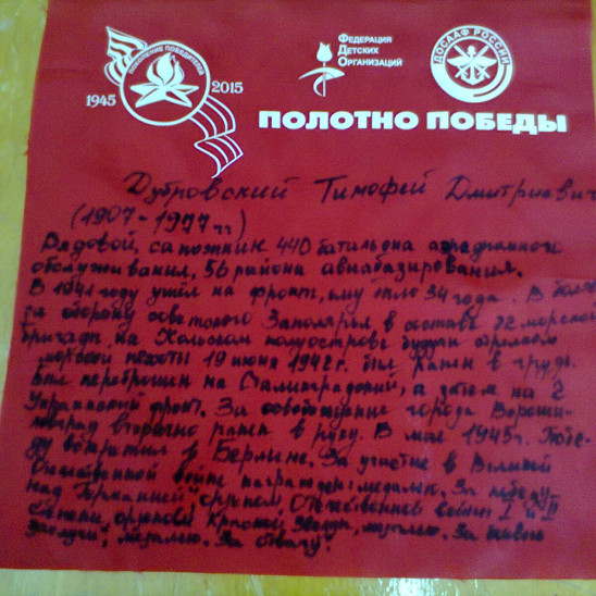 Дубровский Тимофей Дмитриевич, родился в Тамбовской области, Алгасовском районе, д. Бутырки, в 1907 году. Рядовой, сапожник 440 батальона аэродромного обслуживания, 56 района авиабазирования,