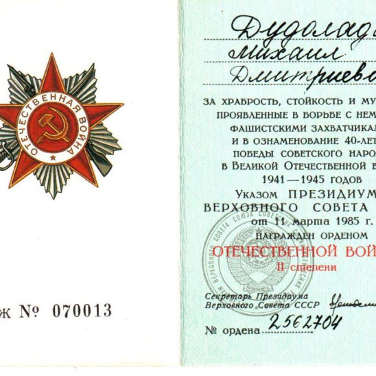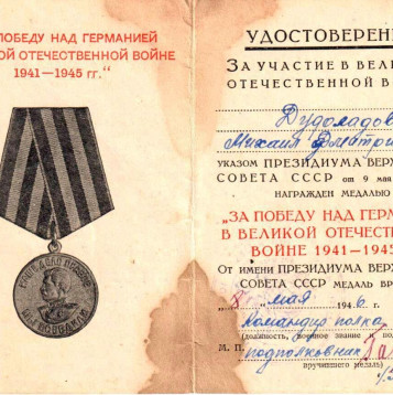 марта 1946 года.Ранений и контузий в период ВОВ не имел.Правительственные награды:-Медаль «За победу над Германией в ВОВ 1941-1945 г.г.»