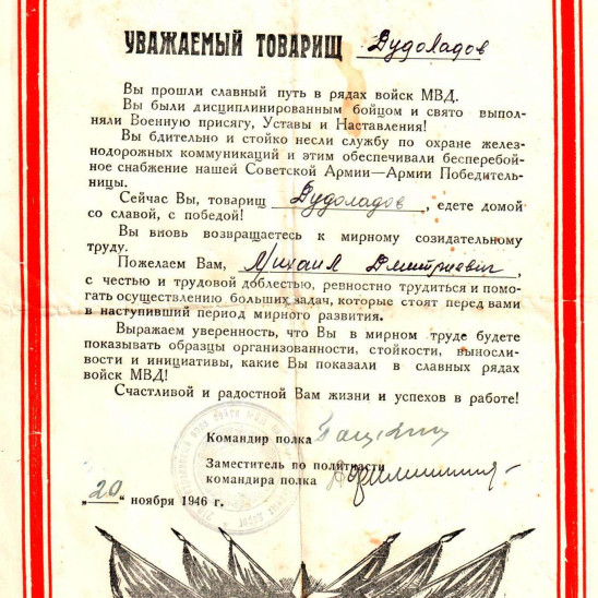 полку НКВД-шофёр.С сентября 1945 года по октябрь 1946 года -210 полк