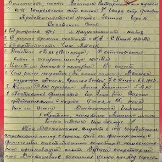 внесен в Книгу почета САВО. С момента формирования дивизии он был комсоргом