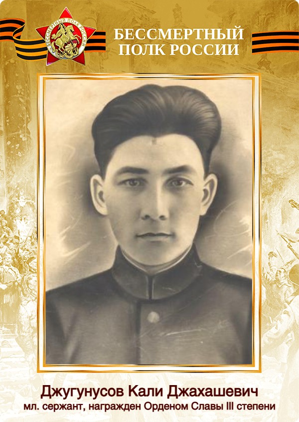 Призван Камызякским РВК в 1939 г. Проходил службу в 202 отд. стрелковой бригаде. В 1941 году началась война. Окончив школу младших командиров, в 1942 году в должности помощника командира взвода автоматчиков в составе 202-го отдельного стрелкового батальона был направлен под Сталинград. Однако до Сталинграда часть не доехала.Первый порох пришлось понюхать под городом Старобельском. В 1943 в составе 1 Украинского фронта Кали Джакашевич освобождал от фашистов Западную Украину. Но не только от фашистов - здесь лютовали банды Степана Бандеры, вождя украинских националистов, тесно сотрудничавшего с немцами. Награжден Орденом Славы III степени.