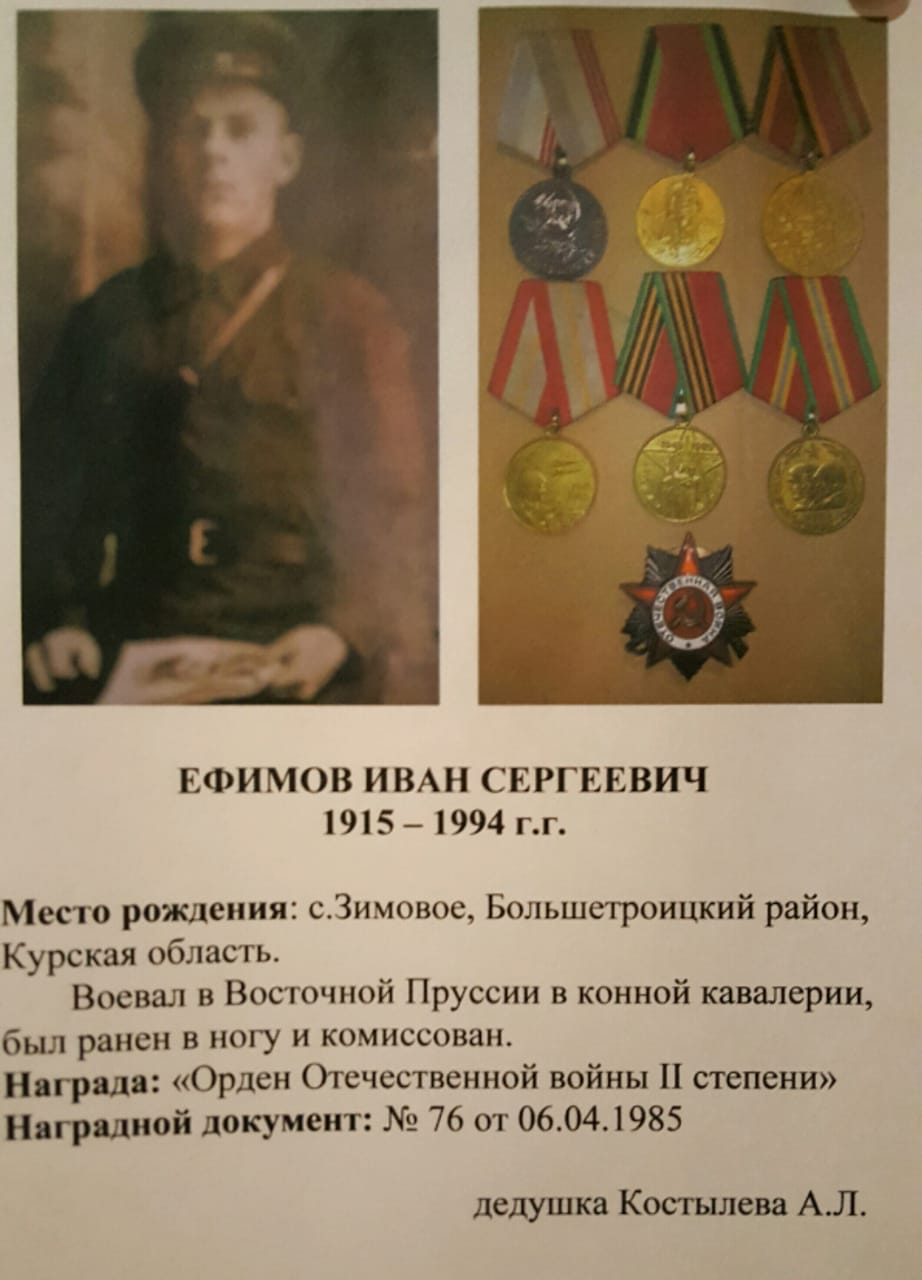 Боевой путь ветерана воевал в Восточной Пруссии в начале Великой Отечественной войны в конной кавалерии. Был ранен в ногу и комиссован.