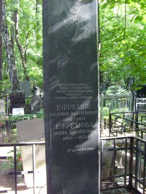 Ефремов Владимир Валентинович генерал-майор-инженер, заслуженный деятель науки и техники РСФСР, доктор технических наук, профессор. Родился в 1897 г. в с. Онуфриево (Рузский р-н, Московская обл.). Русский.В РККА с 1919 - 1921 г. и с 1932 г. Участник Гражданской войны в 1919 - 1921 гг. в составе 13-й армии. С марта 1937 г. - начальник кафедры восстановления боевых машин Военной академии механизации и моторизации.В июле - сентябре 1942 г. стажировался на Северо-Западном фронте. 1943 г. и 1945 г. - начальник кафедры восстановления танков Военной академии БТВ. Заслуженный деятель науки и техники РСФСР, доктор технических наук, профессор. Умер в декабре 1972 г. Воинские звания: военинженер 1-го ранга, бригадный инженер (27.01.1941), ген.-майор ИТС (07.02.1943)