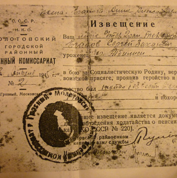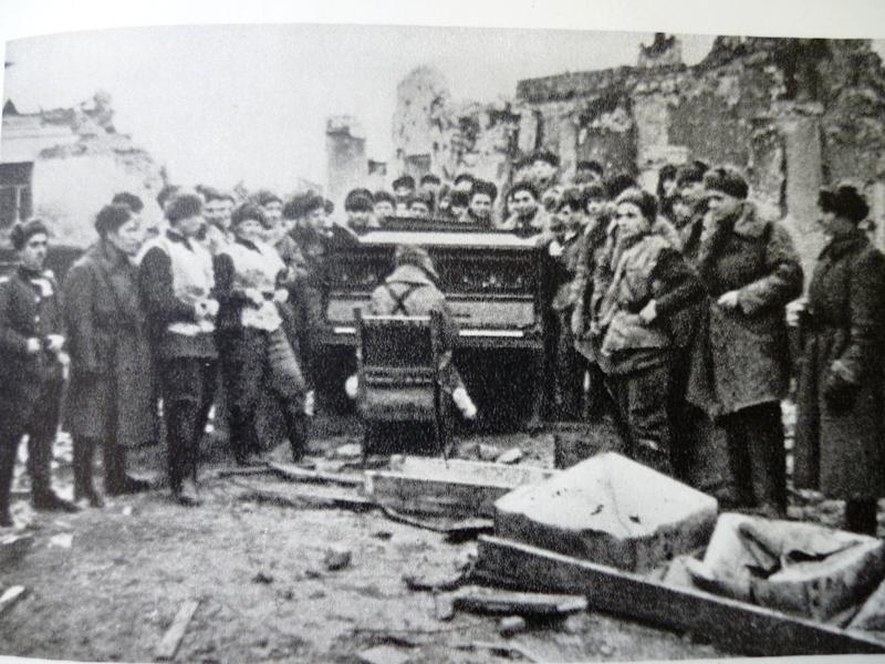 Все послевоевоенные годы ждала и надеялась на встречу с любимым мужем, и «встреча» была неожиданной…Листая книгу «Из кинолетописи Великой Отечественной 1941-1945», она воскликнула: «Это он! Сережа!».На документальном снимке он стоит в кругу товарищей (на фото 3-й справа, большой палец за поясом – его любимая поза) и перед боем слушает музыку…подписано «Сталинград», на запрос фотокорреспонденту о подробностях снимка ответа не последовало.