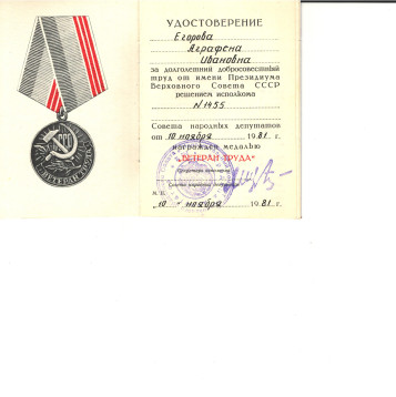 Она награждена многими медалями, в том числе: знак «Ударник девятой пятилетки» (25.11.1975 г.), «Ветеран труда» (10.11.1981 г,), медаль «За доблестный труд в Великой Отечественной войне 1941-1945 гг.» (1.12.1993 г.), «50 лет Победы советского народа в Великой Отечественной войне 1941-1945 гг.» (22.03.1995 г.), «60 лет Победы в Великой Отечественной войне 1941-1945 гг.» (1.04.2005 г.), «65 лет Победы в Великой Отечественной войне 1941-1945 гг.» (12.02. 2010 г.), «70 лет победы в Великой Отечественной войне 1941-1945 гг.» (13.03.2015 г.), «75 лет победы в Великой Отечественной войне 1941-1945 гг.» и др.