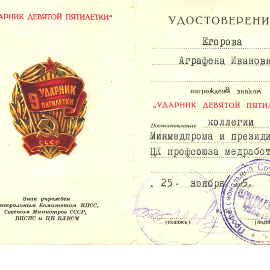 Егорова Галина (Аграфена) Ивановна (2.06.1926 - 3.12.2020) родилась в деревне Рябцево Чапаевского района Рязанской области - участница Великой Отечественной войны.