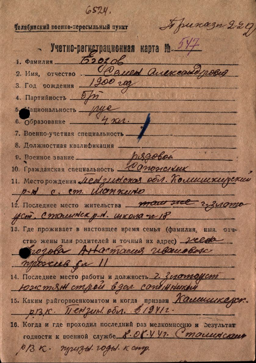 Место рождения: Пензенская область Камешкирский район село Старое Шаткино