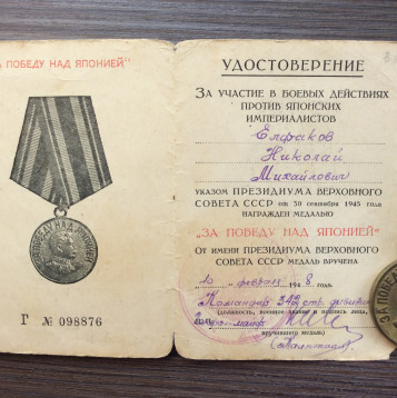 Боевой путь ветерана Участник войны с Японией с 09.08.1945г. по 03.09.1945г.