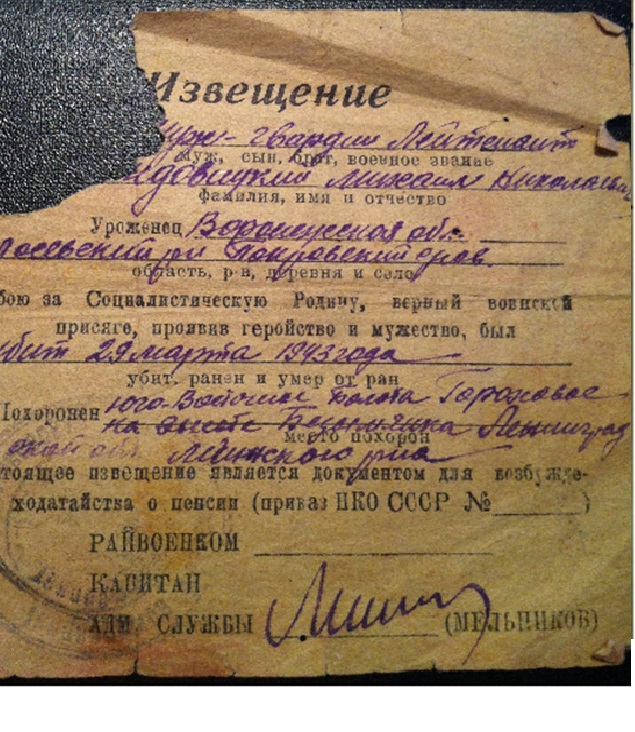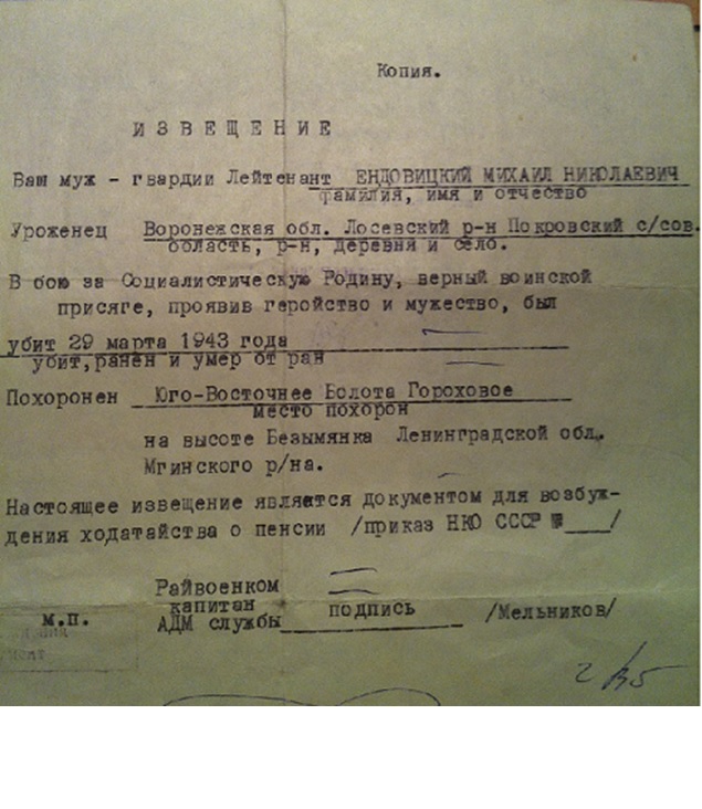 Место рождения: Воронежская область, Лосевский район, с.Покровка