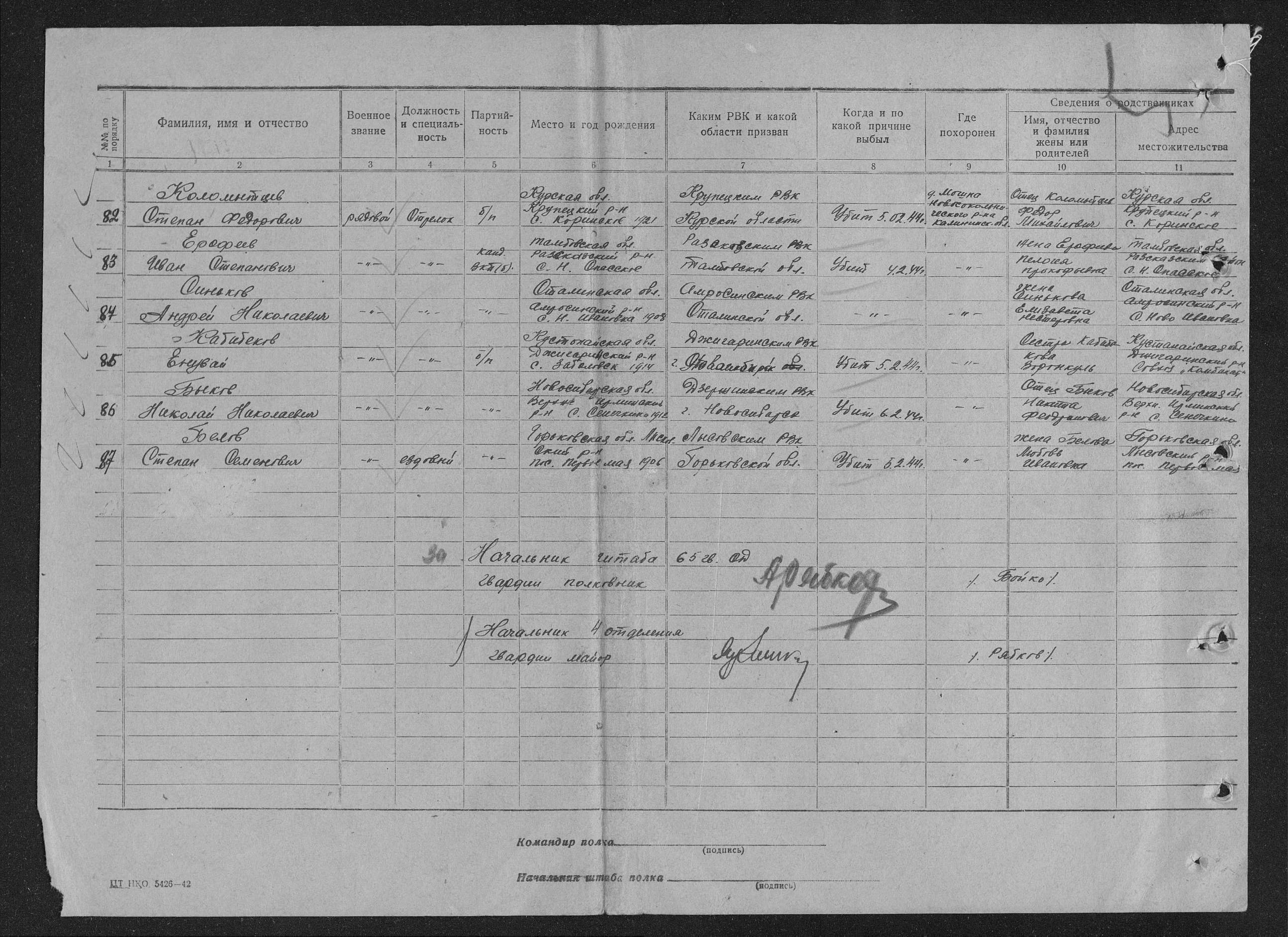 Мой прадедушка- Ерофеев Иван Степанович, родился в Тамбовской области. Был женат на Ерофеевой (девичья фамилия Пойманова) Пелагеи Прокофьевне. Дети: дочь Анна и сын Николай. На войну был призван Рассказовским районным военным комиссариатом. Со слов знаю что он лежал в госпитале с тяжёлыми ранениями обоих стоп. Должны были комиссовать. Но пришла повестка вернуться в строй.