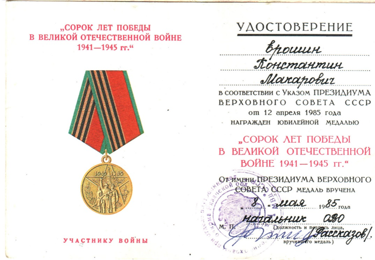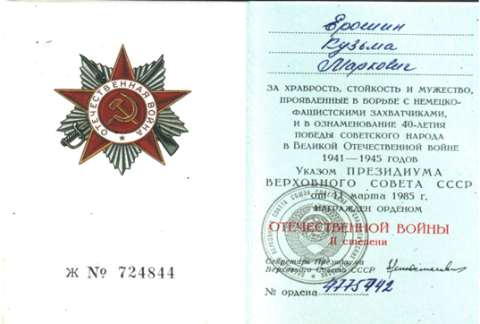 Ерошин К.М Участвовал в Отечественной
