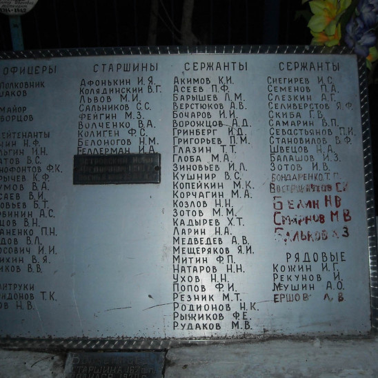 Леонид Васильевич был призван в Красную Армию в июле 1941 года. Прибыл в 42 учебно-стрелковый полк 10 октября 1941 года. Погиб 03 августа 1942 года Ленинградская область Половский район деревня Васильевщина. В 2010 году найден медальон на Ершова Леонида Васильевича 1922 года. Перезахоронен в Новгородской области Парфинский район деревня Васильевщина воинское захоронение 216.