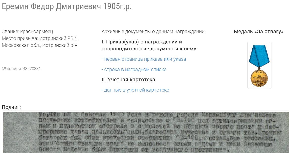 имеется запись № 43470819 в ЦАМО (фонд: 33,