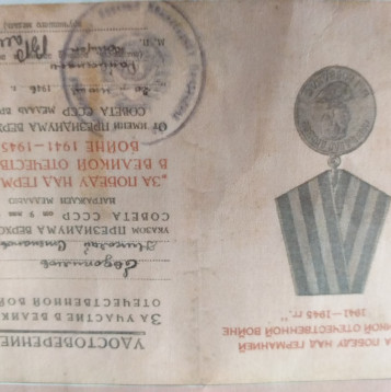 В 1942 году прибавил себе год и пошел на войну. Где воевал данных нет, но знаем, что 26.08.1943 года был ранен в левую ногу. Из госпиталя вернулся на фронт 30.07.1944 года. Было присвоено звание старший сержант. Во время боя приняли удар с воздуха. Был ранен в левую ногу и не смог выбраться из образовавшейся воронки. Через двое суток его нашли сослуживцы и под бомбежкой выносили его с поля боя. И так он оказался второй раз в госпитале. Ногу спасти не удалось. Был негодным к военной службе 07.12.1945 года.
