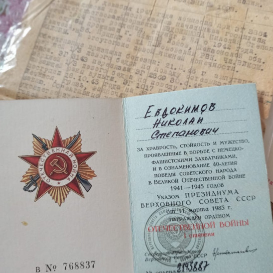 Евдокимов Николай Степанович родился в городе Нижний Ломов Пензенской области 19.11.1925 года.