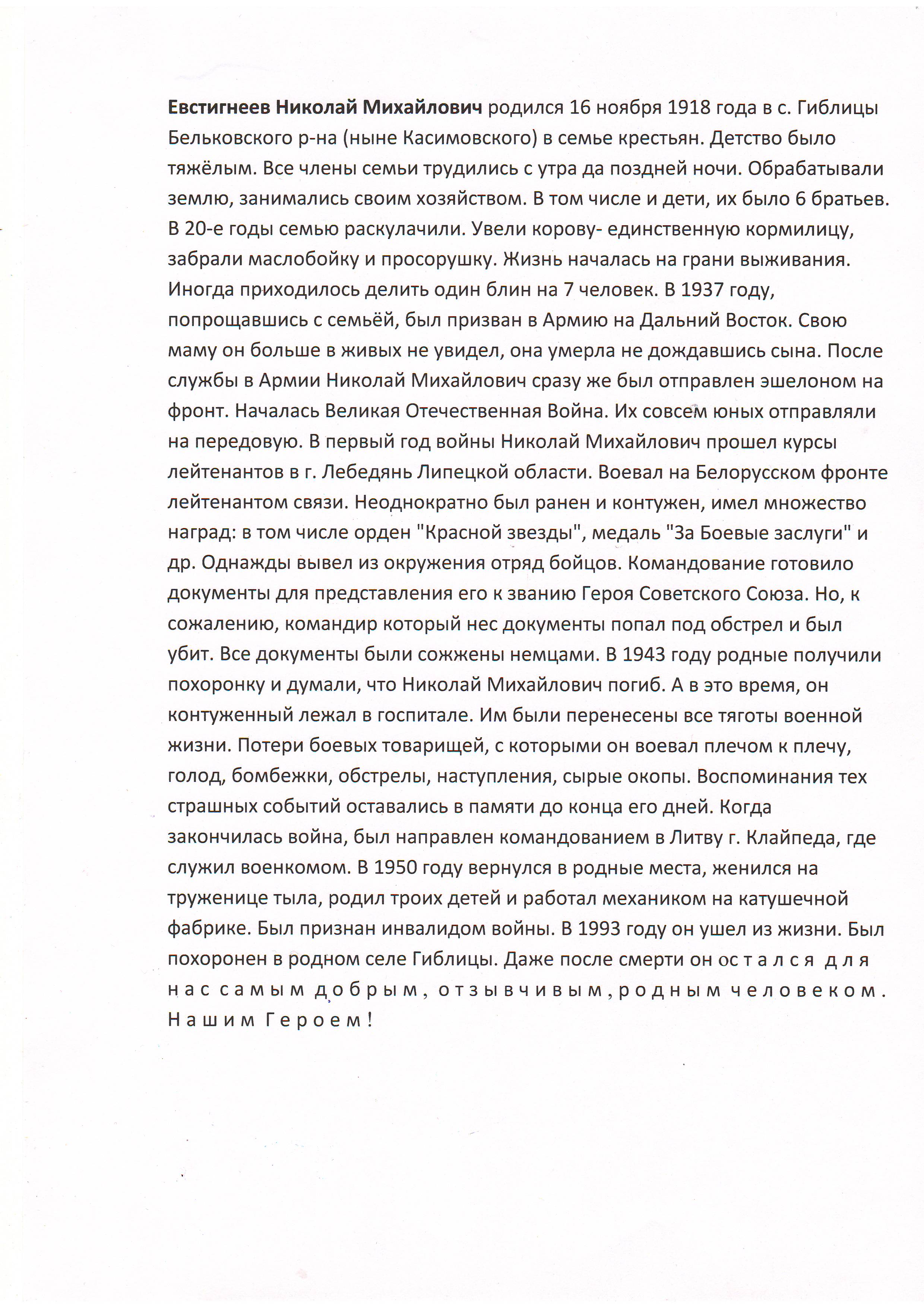 Место рождения: Рязанская область, Касимовский район, с.Гиблицы