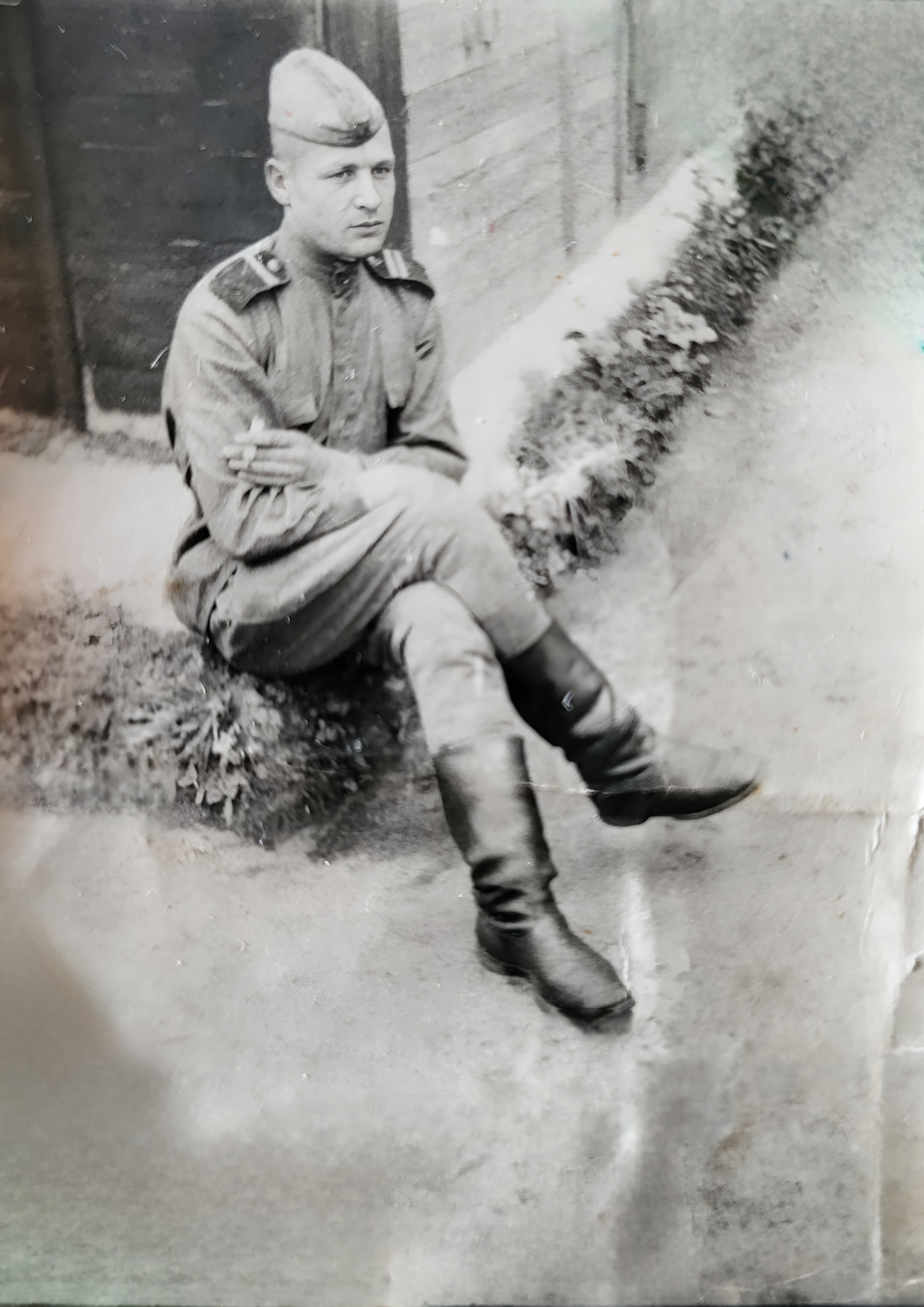 08.02.1945 г. при прорыве обороны противника, батарея находилась на ОП в Шпонсберге. Батарее была поставлена задача выдвинуться вперед, занять огневую позицию и ожидать команды для открытия огня по атакующей пехоте противника. Во время марша на батарею налетело 7 самолетов ФВ-190. Товарищ Евтюхов спокойно вел машину и маневрировал движением. Благодаря стойкости храброго водителя машина была спасена-все бомбы разорвались впереди. К открытию огня орудие было готово своевременно. 09.02.1945 г. батарея стояла на выжидательной позиции в Зеебнице. В 11.00 авиация противника бомбила населенный пункт, спускаясь на бреющий полет. Разрывом бомбы был зажжен дом, рядом с которым стояла боевая машина водителя Евтюхова. Несмотря на продолжавшийся обстрел, товарищ Евтюхов вывел орудие из огня в укрытие. 10.02.1945 г. в момент залпа батареи в Армаде-Брун, противник произвел сильный огневой налет на огневую позицию. В этой сложной обстановке товарищ Евтюхов первым вывел машину из-под огня и поставил на запасную огневую позицию, орудие вновь было готово к открытию огня. За весь период наступления, орудие, где водителем был товарищ Евтюхов не имело ни одного случая поломки машины.