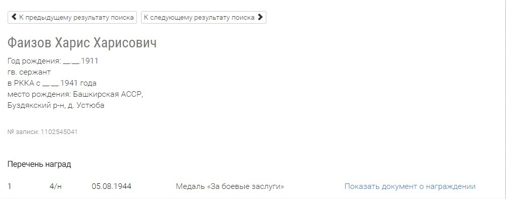 Демобилизован на основании Указа Президиума Верховного Совета СССР от 25.09.1945. - 10.10.1945.