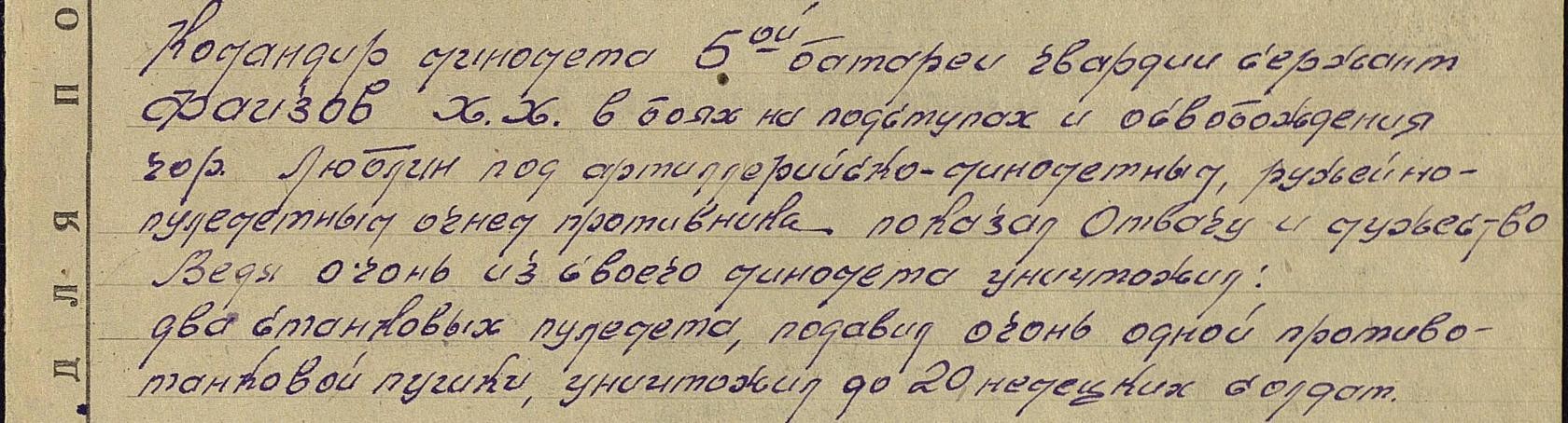 с 10.07.43. по 09.05.45 в Великой Отечественной Войне в составе 269 минометного полка - командир минометом.