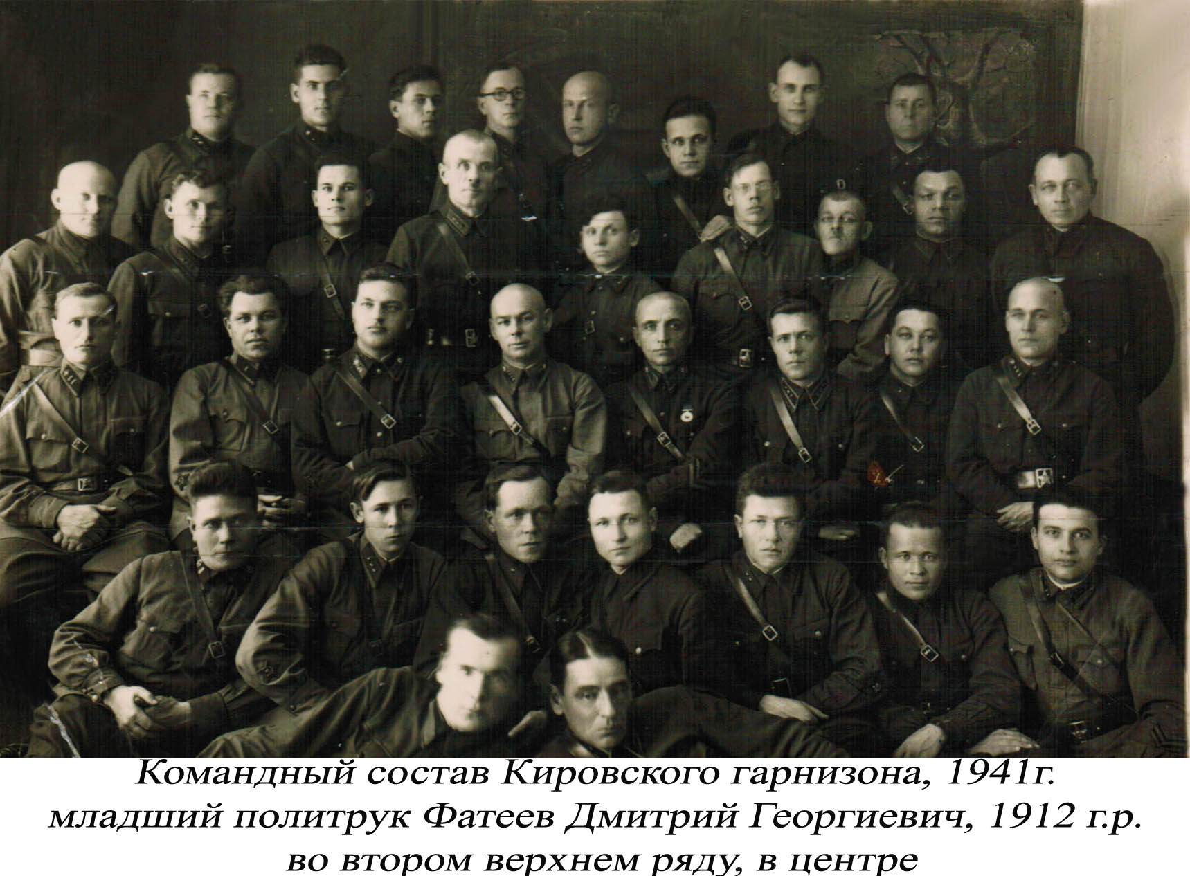 Мой дед Фатеев Дмитрий Георгиевич (1912г.р.) пропал без вести в марте 1942 г. С 1974г. мой папа Фатеев Виктор Дмитриевич занимается поиском каких-либо сведений о местах боевых действий и гибели своего отца. Удалось получить с Подольского архива довоенное личное дело деда. Из автобиографии мы узнали, что призван он был на действительную службу в ряды Красной Армии Магнитогорским РВК в 1937г. После службы остался в Армии и в звании мл. политрука отбыл на фронт 27.01.1942г. из г. Кирова.