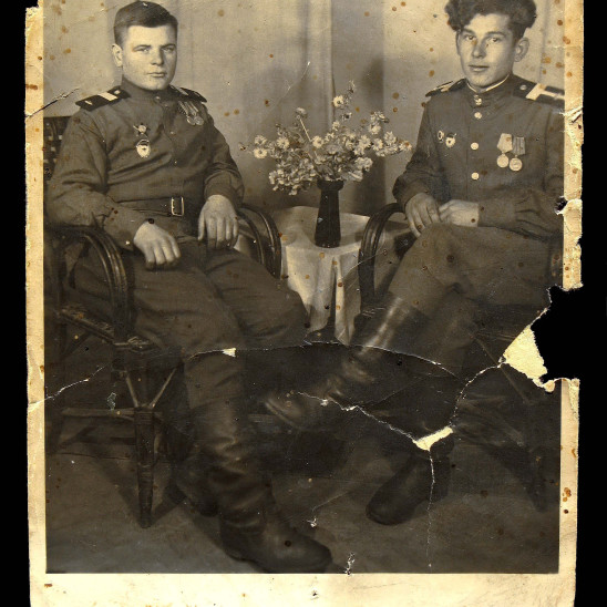 Мой дед, житель блокадного Ленинграда. Учился в Ленинграде в 5 РУ. В 1942 году был эвакуирован на Урал в город Челябинск. Работал на Челябинском тракторном заводе. В 1943 году 16 января он написал заявление о желании вступить в добровольческий танковый корпус и был зачислен в 26 учебный курсантский полк. В июне 1944 года он был призван Кировским РКК города Куйбышев на фронт. Он был командиром орудия танка 3-23. Мой дед участник Берлинской и Пражской операций. После окончания ВОВ жил в Московской области в городе Долгопрудный и трудился на Долгопрудненском машиностроительном заводе.