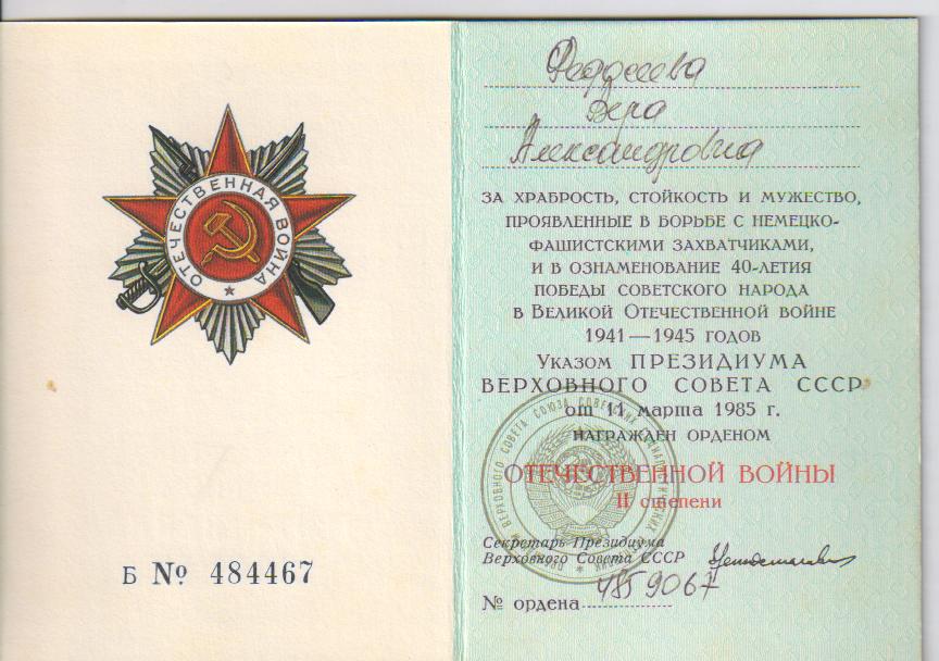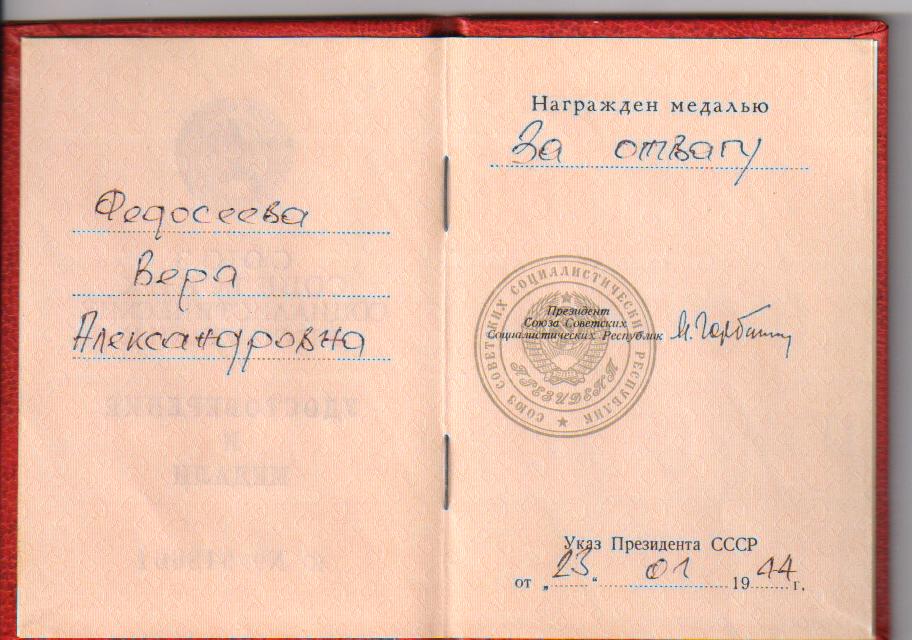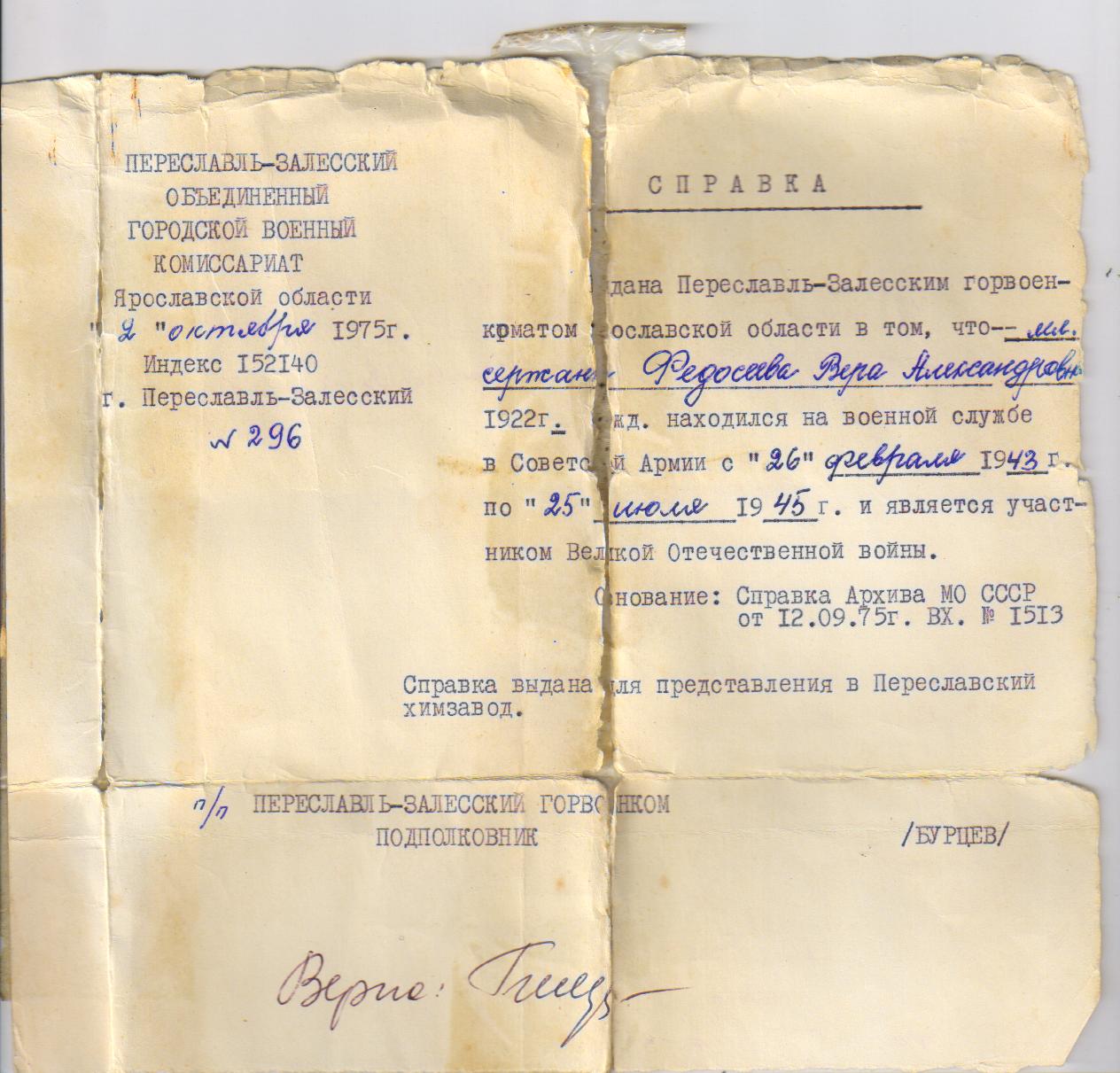 Вера Александровна Федосеева встретила День Победы в Чехословакии. В годы войны была снайпером. В мирное время работала на прядильно-ткацкой фабрике "Красное Эхо".