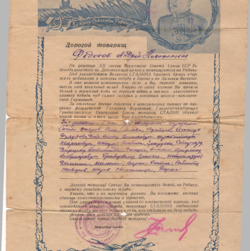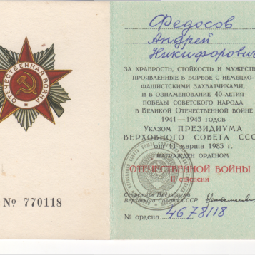 Великой Отечественной войны, красноармейце Федосове Андрее Никифоровиче.