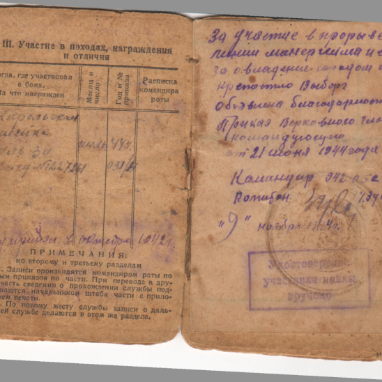 прадеда: «За участие в прорыве линии