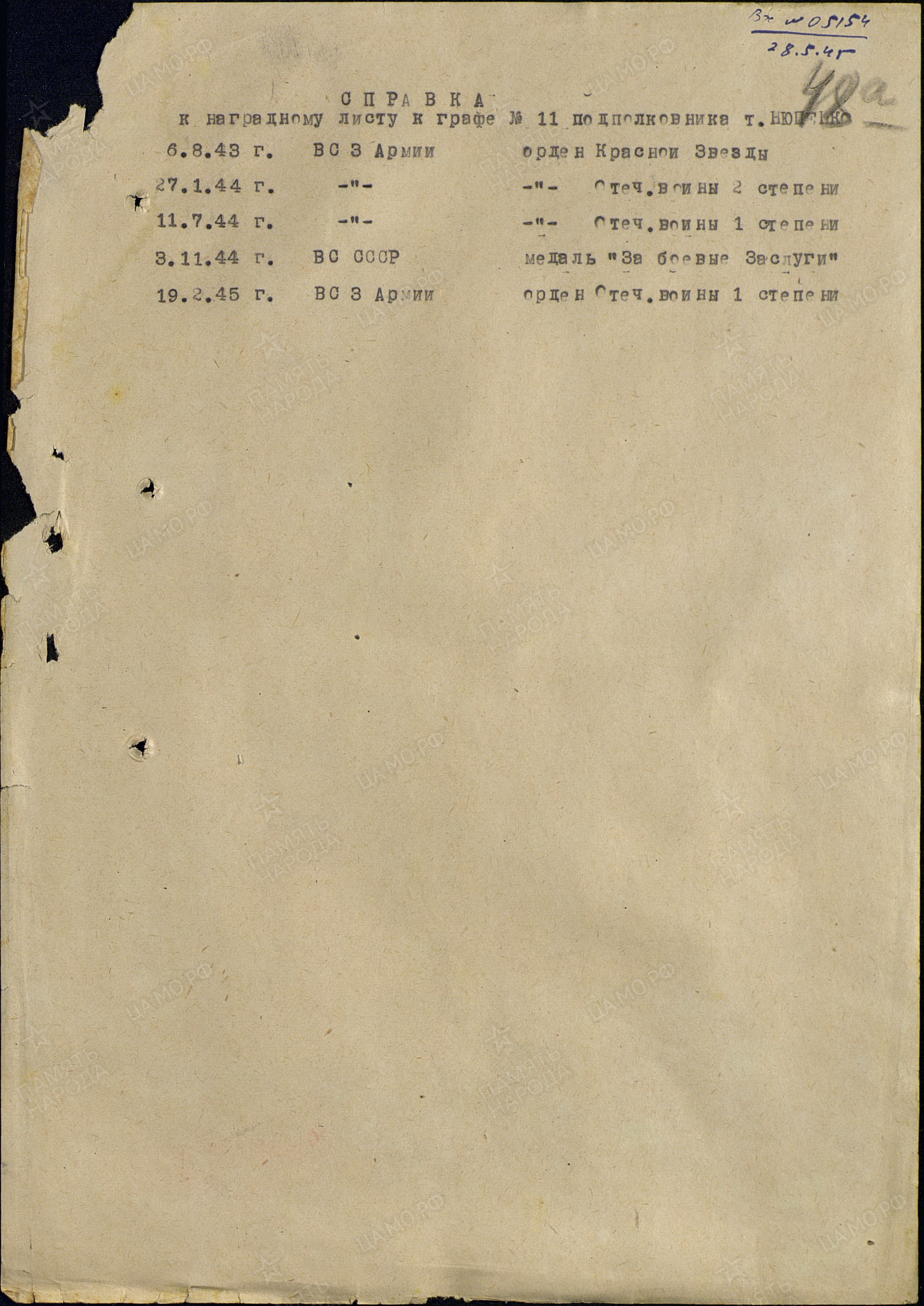 Наименование награды - Орден Отечественной войны II степени