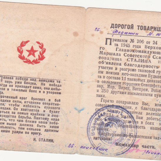 танковой группы немцев юго-западнее Будапешта. Уволен в запас 7 июля 1947 года