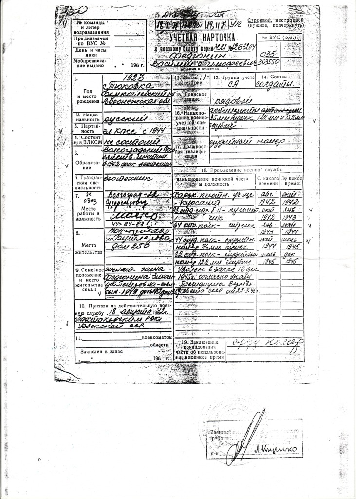 Тимофеевича Федюнина демобилизовали по состоянию здоровья в 22 года.