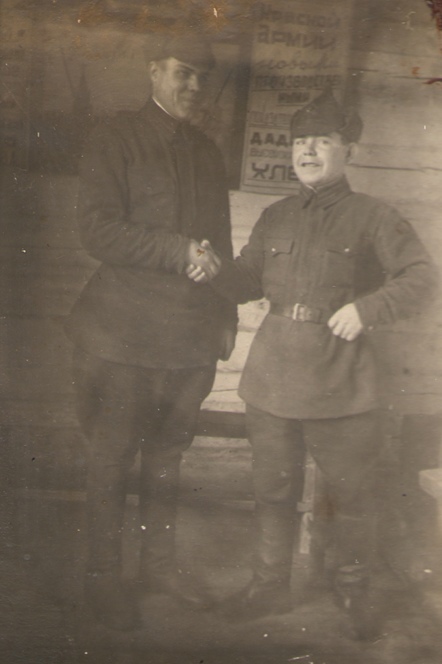 Итак два брата дрались за царя и против царя. Потом они подружились по-братски и Василий убеждал Данилу, что б быть верным и не позорить свой род. А через несколько дней пришел урядник и еще 2 солдата и Данилу забрали. Хорошо помню, как плакала вся семья. Дважды проверили документы Василия, но он кроме документов показал затылок, где пуля сделала светлую от волоса дорожку и раненую ногу. Когда забирали Данилу, бабушка бросилась к сыну, обняла, завопила, и запричитала. У двора и во дворе народа собралось пол деревни. Ворота и калитка отворены. Дед стоял между двух воротных столбов как могучий дуб. Не знаю, то ли плакал, то ли терпел, утаив зло. Когда урядник дернул старуху от сына, Василий молниеносно схватил его за грудки и приподнял. Во дворе рев и суматоха. Все простились с Данилой. А Василий погрозил пальцем уряднику и сказал: «Если хоть пальцем тронете Данилу, пеняйте на себя!..». А в феврале Месяце 1917 года у Василия отпуск кончился и он тоже уехал в свою часть, город Вильнюс, через Москву.