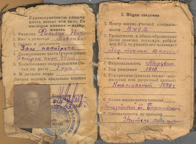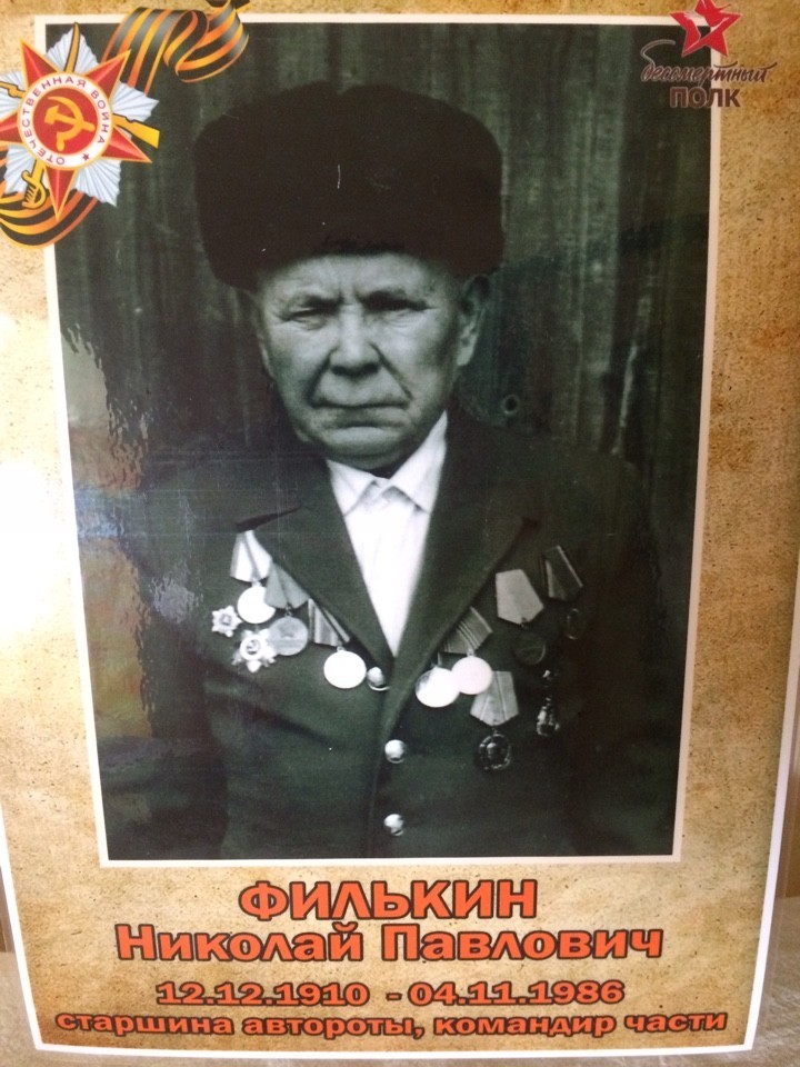 Родился я 12 числа, 12-го месяца 1910 года в семье 32-м человеком. Главой семьи был мой дед, Филькин Викул Антонович – мощный старик-бородач. У него были сыновья: Антон, Павел, Василий, Ианил и дочери Графена и Афемия. По сказаниям моих предков наша фамилия «Филькин» образовалась так: по распоряжению какого-то царя нужно было взять на учет все население русской империи, в том числе и инонационалов мордвов, чувашей, марийцев и т.д. Когда-то в мордовское село Губашево прибыл монах-писарь и с помощью местных родоначальников записывал хозяйства и семьи. Вызвали мужика Матвея и спрашивают какое ему дать прозвище, но он по-русски не понимал. Переводчик спросил: «Чей ты сын, кто твой отец?». Он ответил: «Филька» (Филипп). «Значит, ты Филькин сын? Так и запишем – Матвей Филькин». А у Матвея был сын Тимофей, а у Тимофея сын Антон, а у Антона – Викул, а у Викула – сын Павел, а у Павла сын Николай – это самый я.