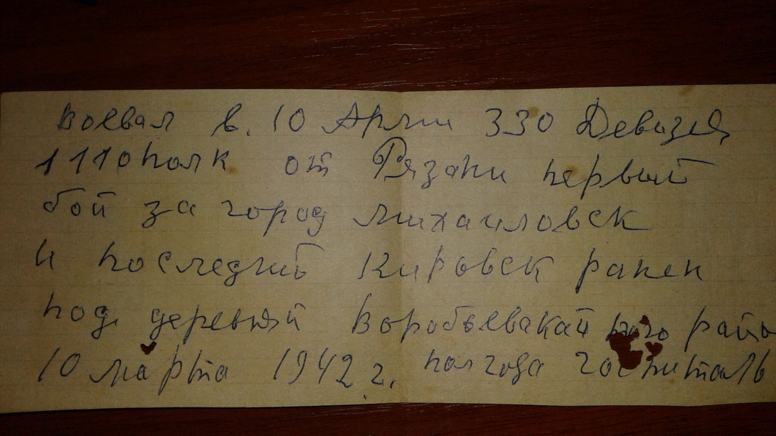 его документах мама нашла записку, написанную его рукой:«Воевал в 10 армии 330
