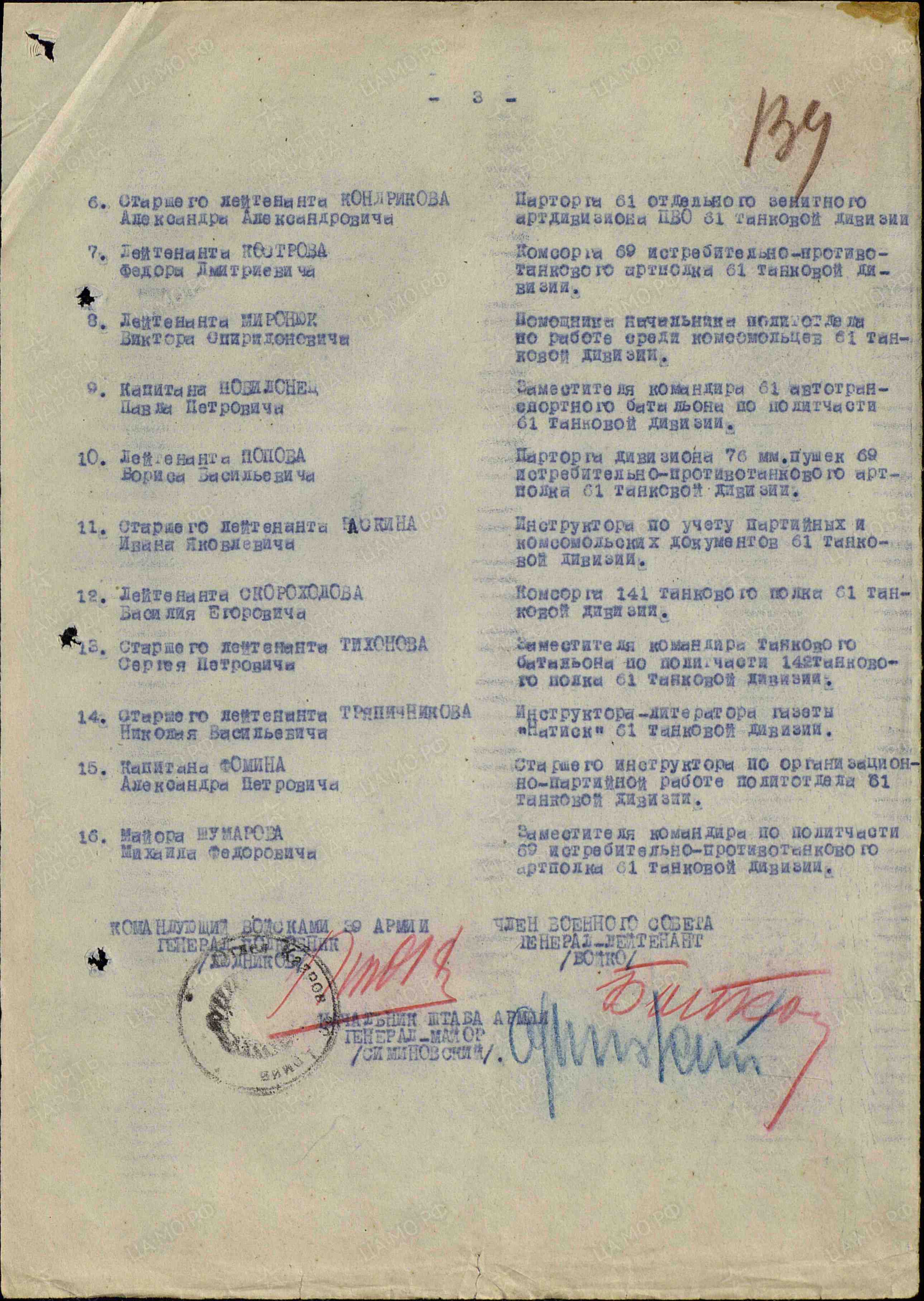 Фомин Александр Петрович, родной брат моей бабушки, родился в 1913 году в городе Тамбове в семье крестьянина собственника Козловского уезда с. Никольское - Петра Тимофеевича Фомина и тамбовской горожанки(мещанки) Любови Степановны Дмитриевой. Александр Петрович, в 1933 году Тамбовским РВК был призван на службу, после окончания военного училища. В 1939 году участвовал в Боях на Халхин-Голе в локальном вооружённом конфликте между советско-монгольскими войсками и Вооружёнными силами Японии. Прошел всю войну политруком в составе 61 танковой дивизии в звании капитана. Участвовал в Советско-японской войне 9 августа – 2 сентября 1945 г. После военных действий в Японии был назначен военным комендантом в Германии в городе Лайсниг . В 80-х годах вернулся в Тамбов и вышел в отставку в звании подполковника.