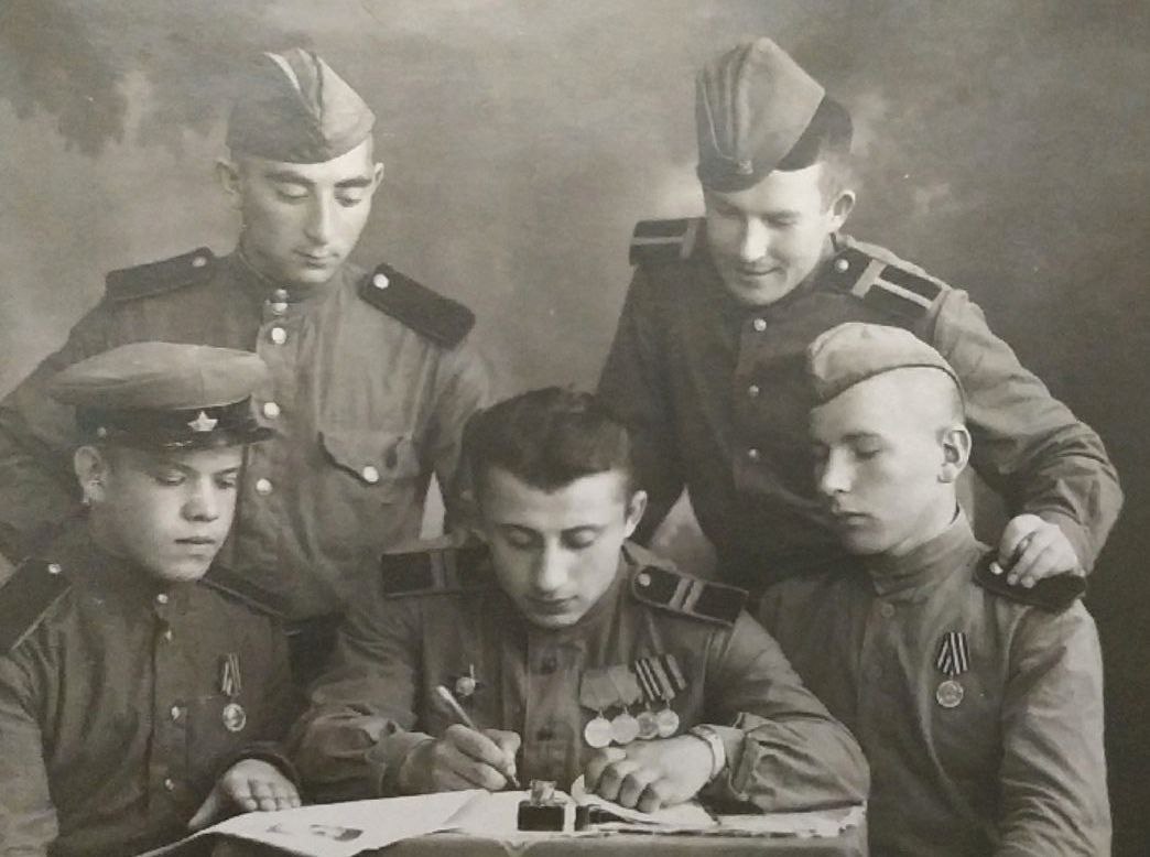 Французов Экнадиос Саакович 26.07.1923г.-12.01.2002 г. Родился в Мясниковском р-не с. Большие Салы в многодетной семье. В 3 года семья пешком ушла в г. Ростов-на-Дону. Прошёл всю войну и вернулся Победителем! 26 июля 2022 года ему исполнилось бы 99 лет. Для него война закончилась в 1946 году в Европе. Ушёл добровольцем. Был танкистом. Служил в 4 гв. омехд. Участвовал в освобождении Сталинграда, дошёл до Берлина, освобождал Болгарию, Будапешт, Молдавию, Украину. Награждён: - Орденом "Красная звезда", - медалью " За Боевые заслуги" , - серебряным крестом Английской королевы, - медаль "За освобождение Болгарии", - Медаль "За освобождение Будапешта", - Медаль "За взятие Берлина". В одном из пригородов он и его друг Иван спасли немецкую девочку. Её мать убили. Дедушка в ночи услышал плач ребёнка, у него был музыкальный, очень тонкий слух, кроме него никто не услышал бы. Дедушка рассказал об этом своему другу и показал направление, где он его слышит, так они и нашли в ночи немецкую девочку. Уже после войны, прошло много времени, девочка выросла и дедушка узнал, что она приезжала в Россию и искала своих спасителей, но на тот момент дедушка был в командировке по делам завода Ростсельмаш в Москве и очень жалел, что не смог встретиться, а вот его друг Иван увиделся и потом рассказывал деду о нежданной радостной встрече. После войны дедушка вернулся к мирной жизни, женился и воспитал троих детей. Он много работал на заводе Ростсельмаш, занимая ответственные посты, он продолжал работать и после того, как ушёл на пенсию. Он возглавлял несколько районных Советов Ветеранов, а так же Совет Вереранов г. Ростова-На-Дону. Организовал народную Дружину при заводе РОСТСЕЛЬМАШ. Он был очень скромным, образованным, деятельным человеком. Он стоял у истоков завода РОСТСЕЛЬМАШ. Директора Иванов и Песков его очень ценили. Он неоднократно был отмечен наградами, медалями, благодарственными письмами за свою работу не только руководством завода, но и Министерством Машиностроения.