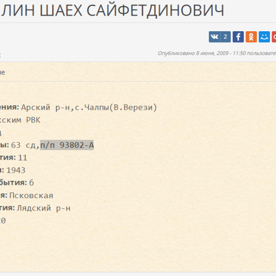 Гайнуллин Шаех на войне был в должности радиста, 23 сентября 1943 года был ранен осколком от снаряда в правый бок. Осколок остался внутри. Он быстро был направлен в санчасть. Но ранение было тяжёлое и он погиб. Где захоронен не знаем, был записан как без вести пропавший. Сохранились все письма с войны, откуда и привела выдержку текста. Моему папе на тот момент было почти 4 года, потому он тоже мало знает информацию о своём отце Гайнуллин Шаех. Его жена (на фото), Лебедева Маруся (Мария) Ксенофонтовна во время войны работала в тылу врачом по всем специальностям, принимала роды, проводила операции, перевязывала. Всё село обращалось к ней за помощью потому что врачей больше не было, ушли на фронт... Умерла бабушка в 1991 году, получала орден Ленина за заслуги перед Отечеством. Фото сделано 4 мая 1935 года в село Азнакаево.