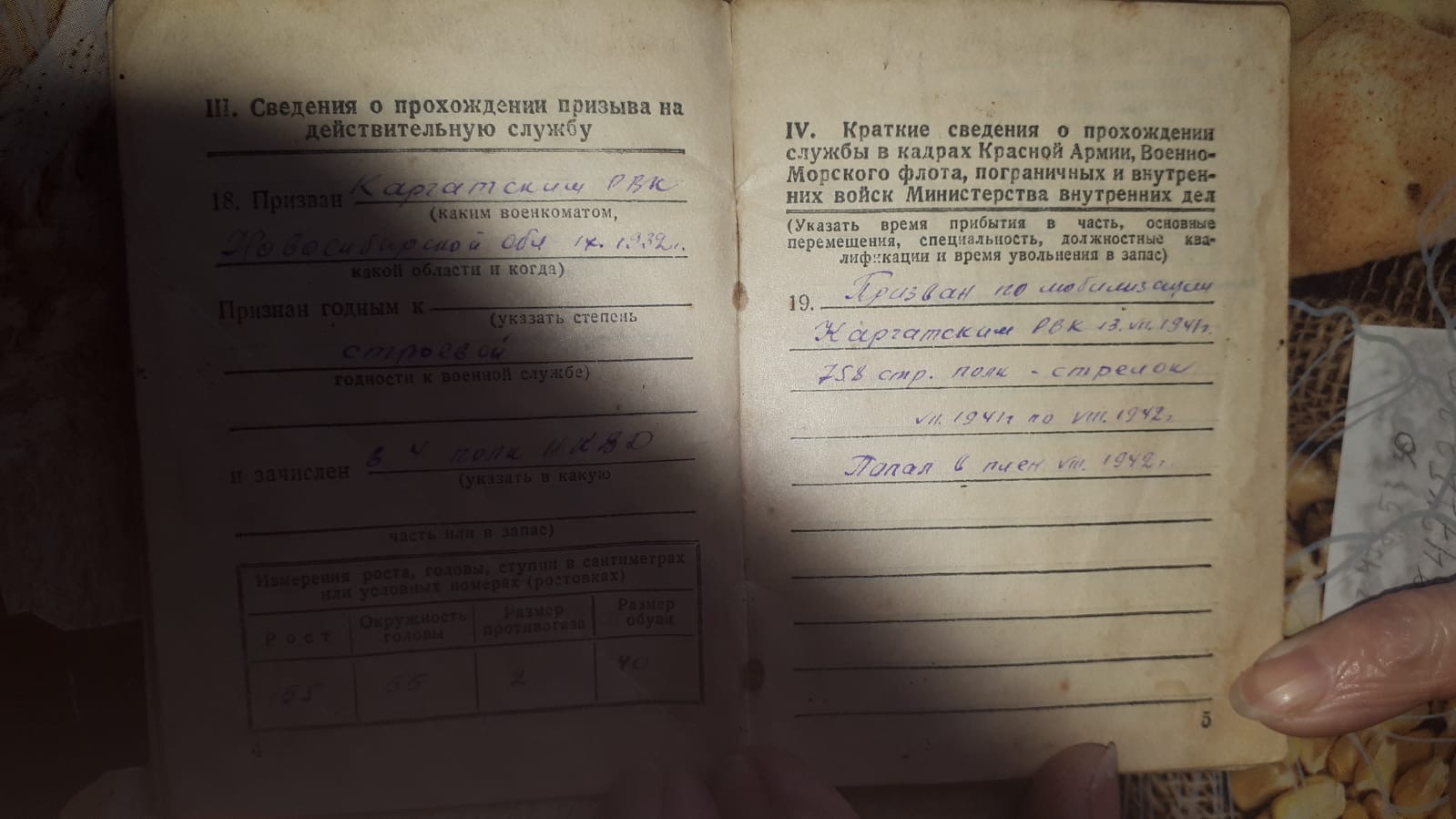 Призван в июле 1941 года, стрелком в 758 стрелковый полк. В 1942 попал в плен.