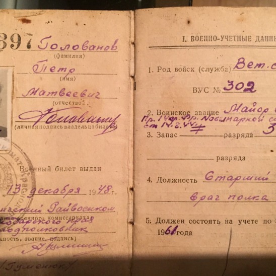 №302, на должности старшего ветеринарного врача полка в звании майора