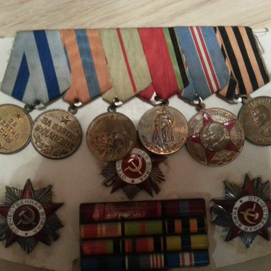 Прадед имел единственную мирную медаль-Ветеран труда, так как сразу после войны стал трудится на заводе до самой пенсии.