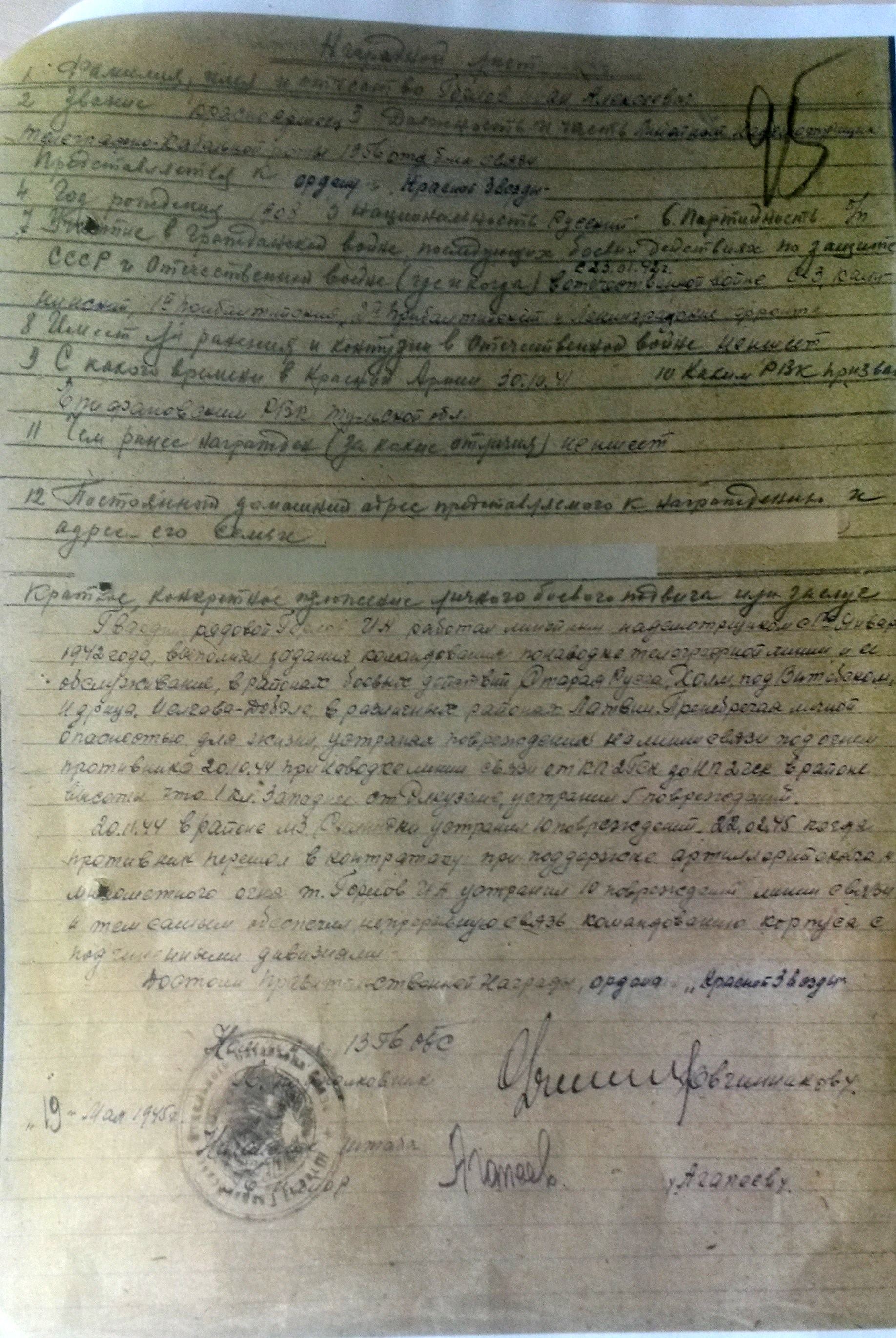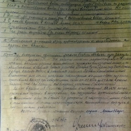 20.11.1944г.в районе м З Силниэки(не точно) устранил 10 повреждений.