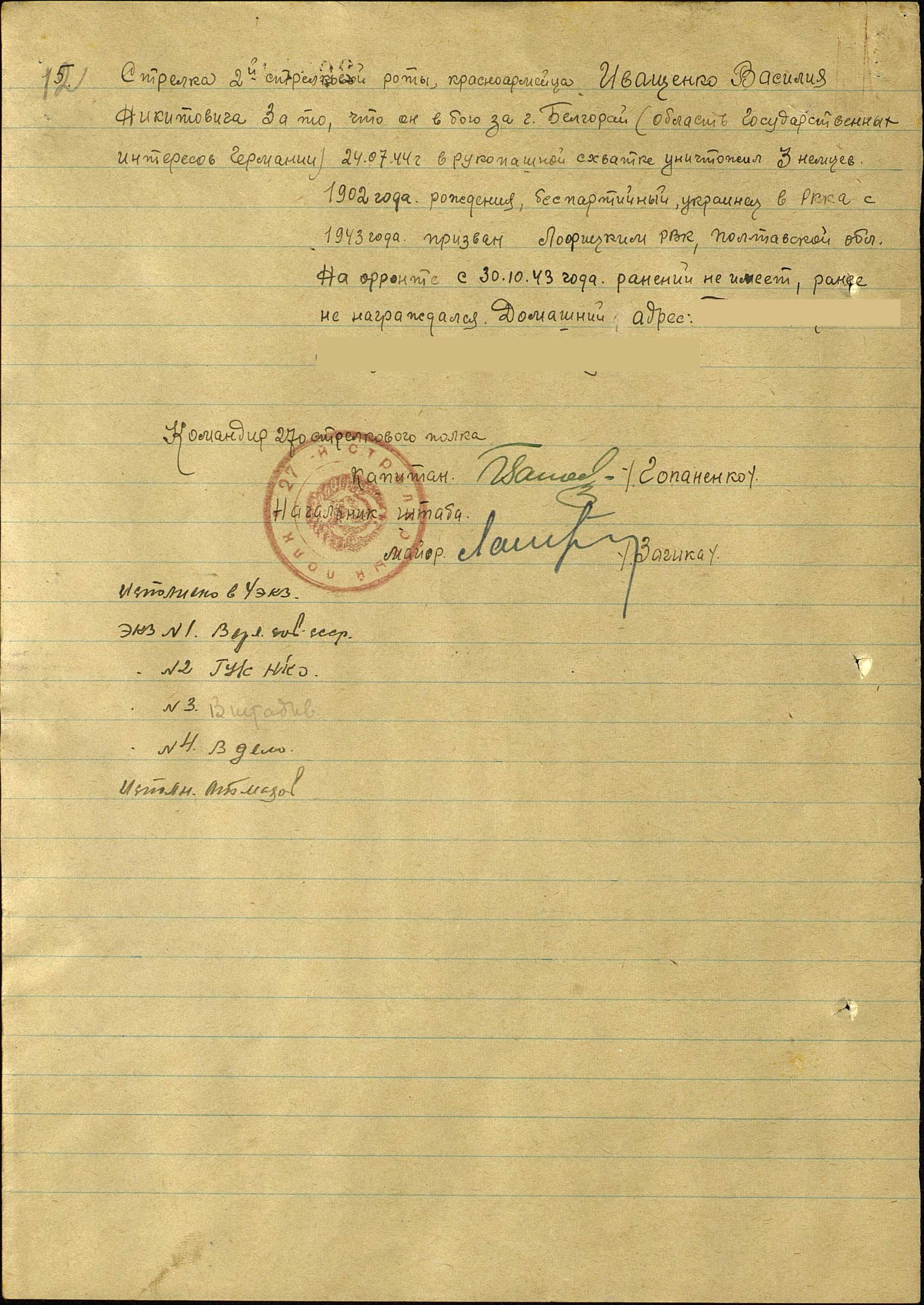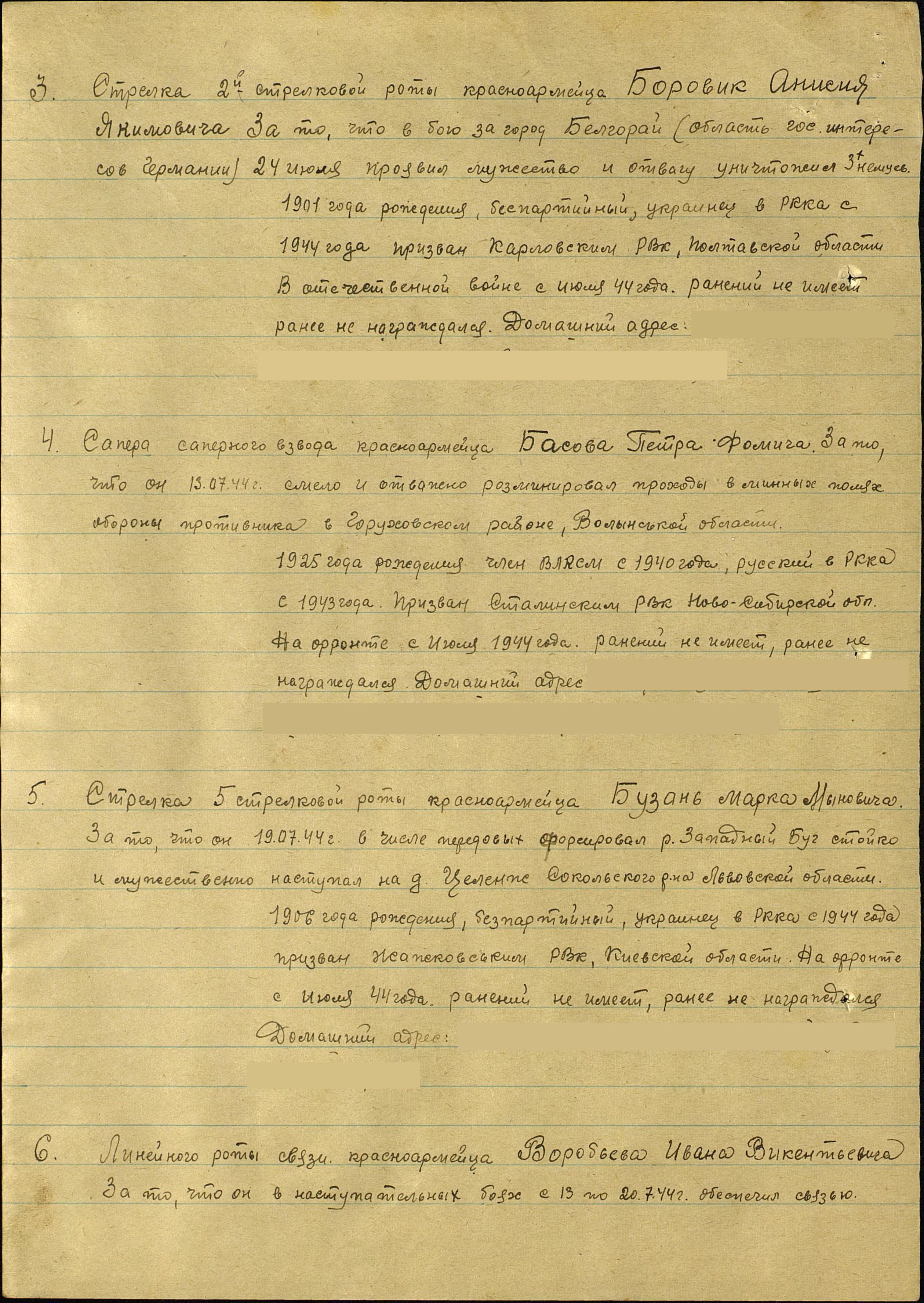 награждения: "За то, что он 19.07.1944 г. форсировал реку Западный Буг,