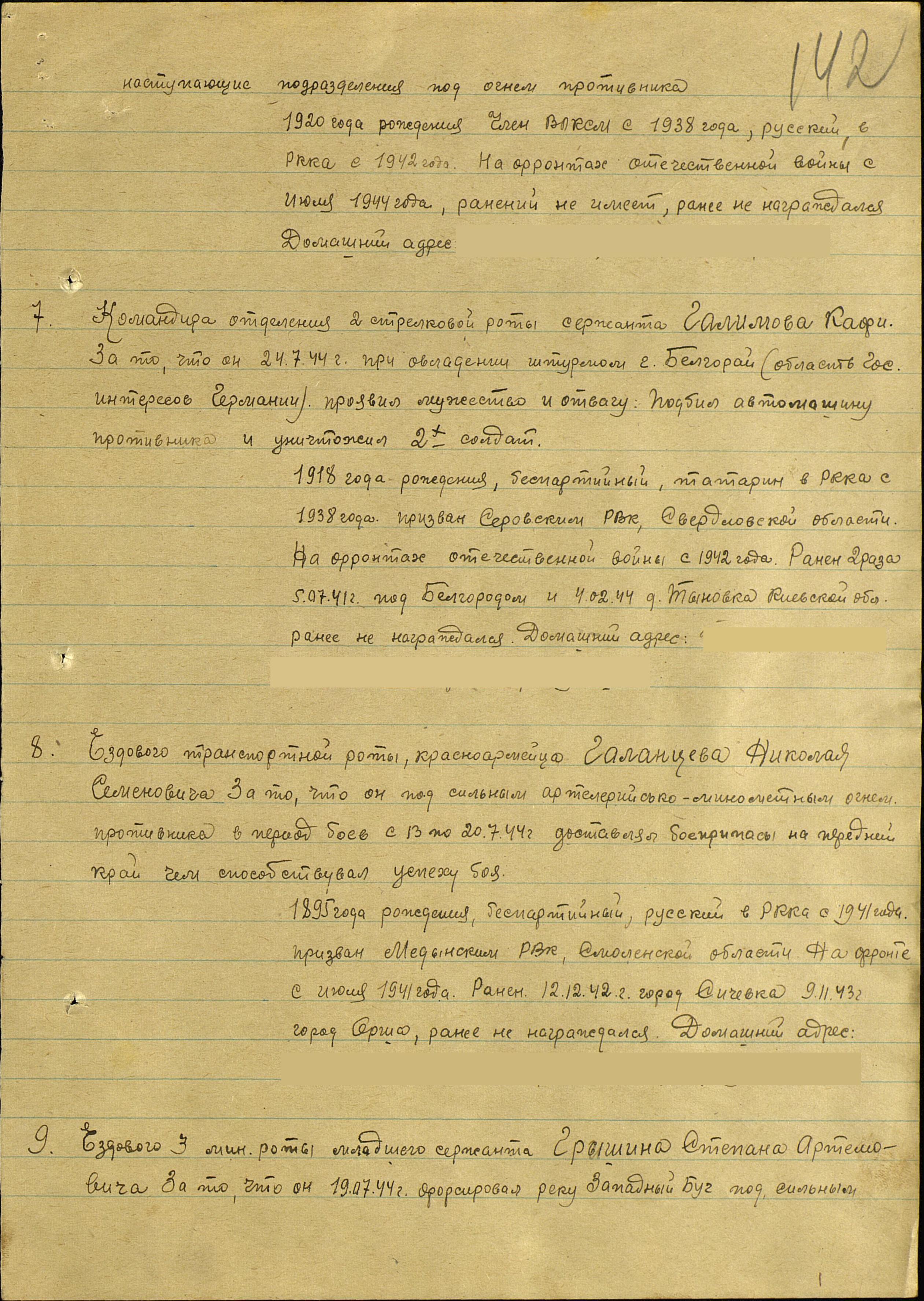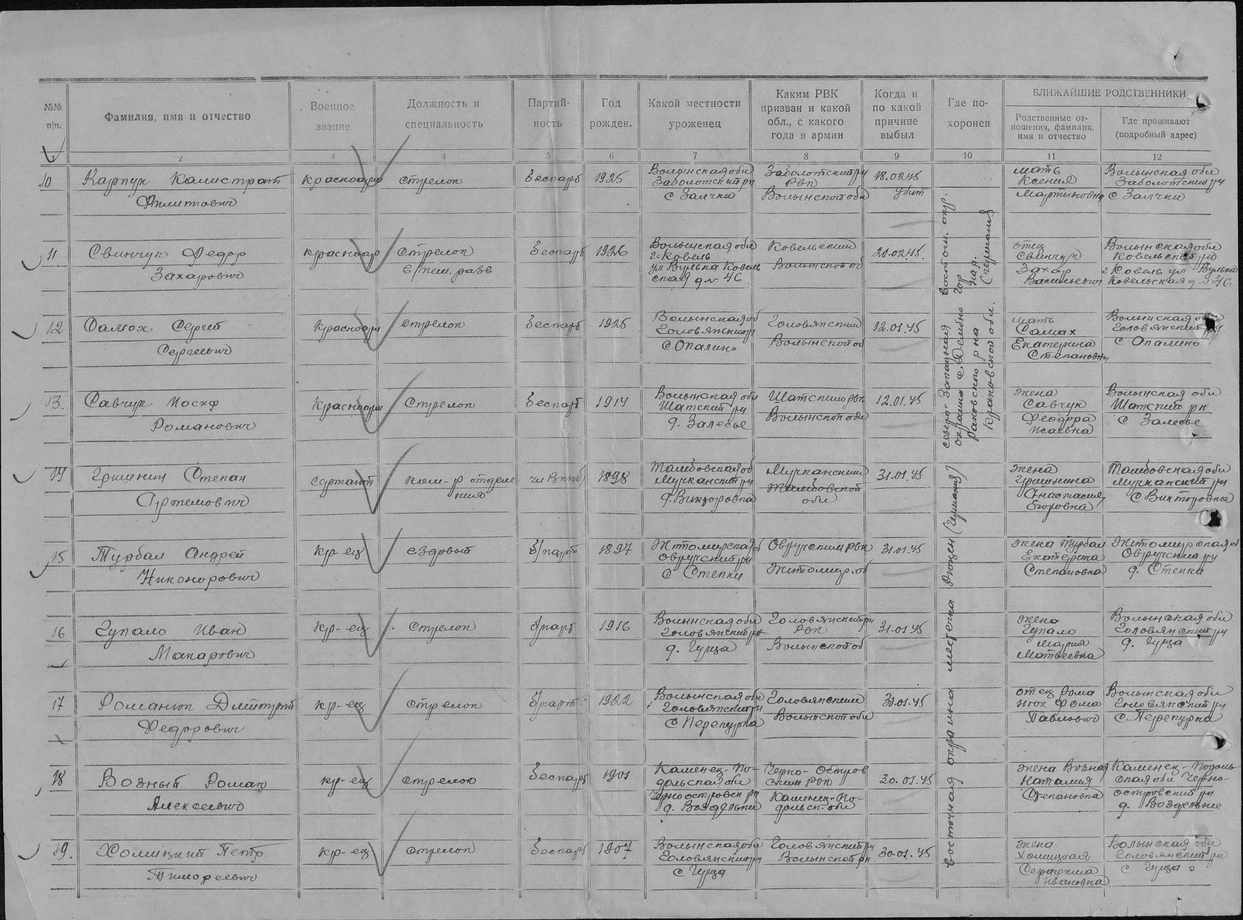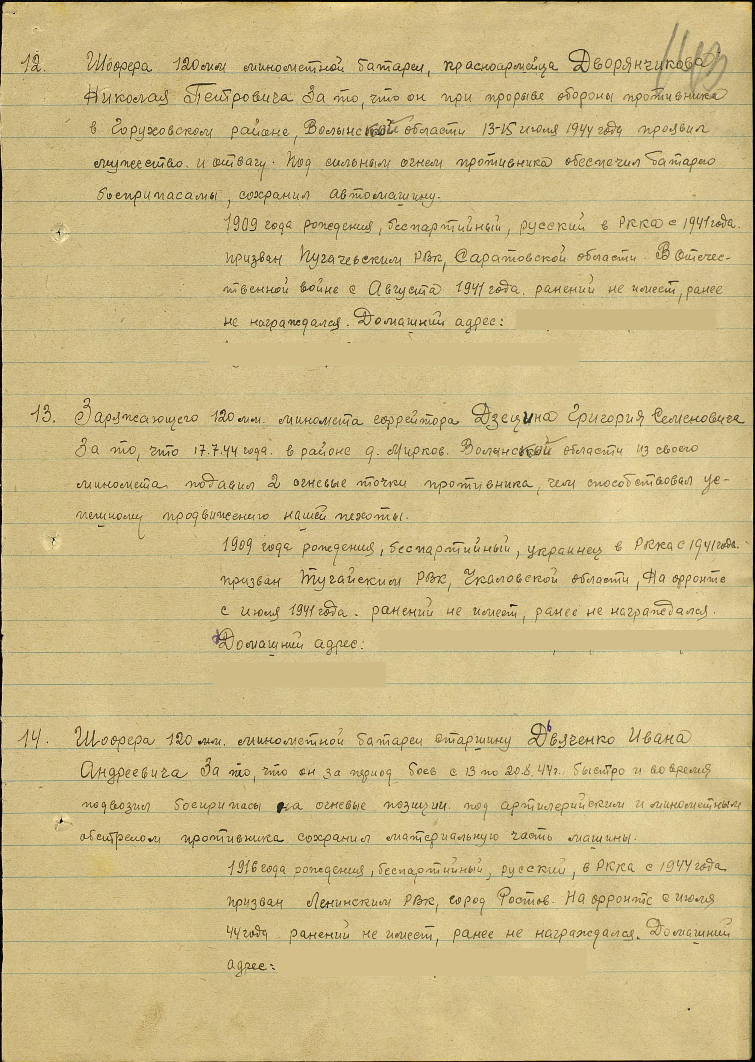 Своевременно обеспечил минами миномётную роту". По причине смерти выбыл из