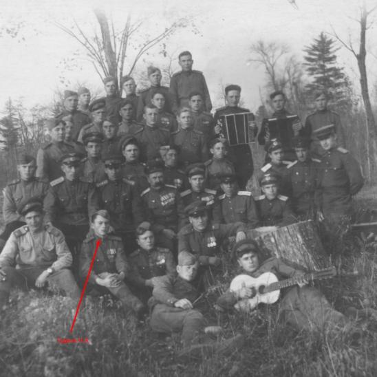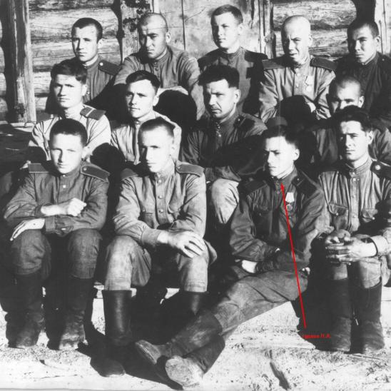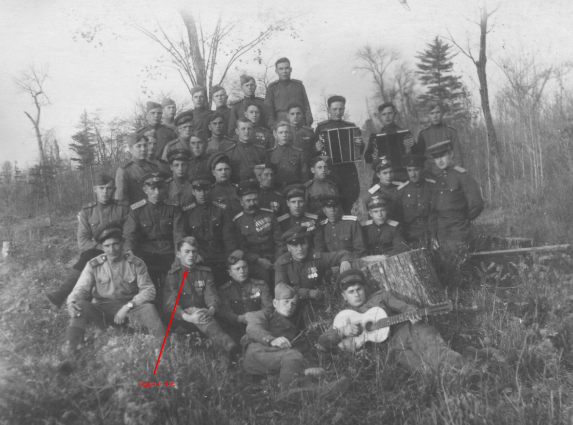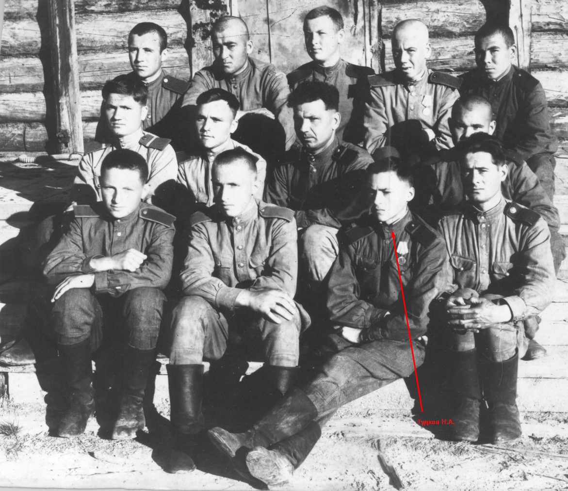 Гудков Николай Александрович. Командир отделения колесных машин. Когда ему исполнилось 16 лет, началась война. Прошел всю войну. Вернулся со службы 28 января 1950 года. Никто не забыт, ничто не забыто.