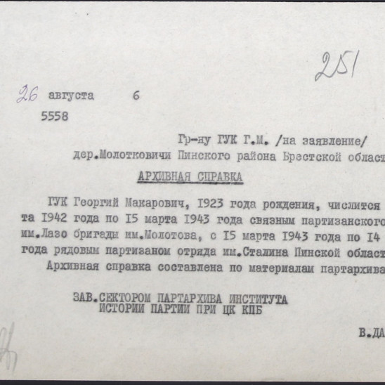 В партизанский отряд ушёл в 1942 году, после того, как расстреляли родителей за связь с подпольем. Воевал в партизанском отряде имени Сталина Пинского партизанского соединения в под командованием В.З. Коржа. После войны был отправлен на партийную работу. Окончил Высшую партийную школу и Минский педагогический институт. С середины 1960-х годов занимался педагогической деятельностью, долгие годы работал учителем истории в Молотковичской средней школе.