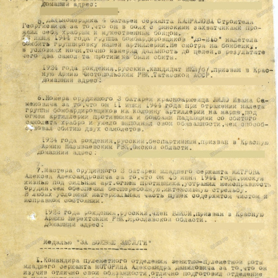 Гусева Василия Николаевича за то , что он во время бомбёжки 13.06.1944г.