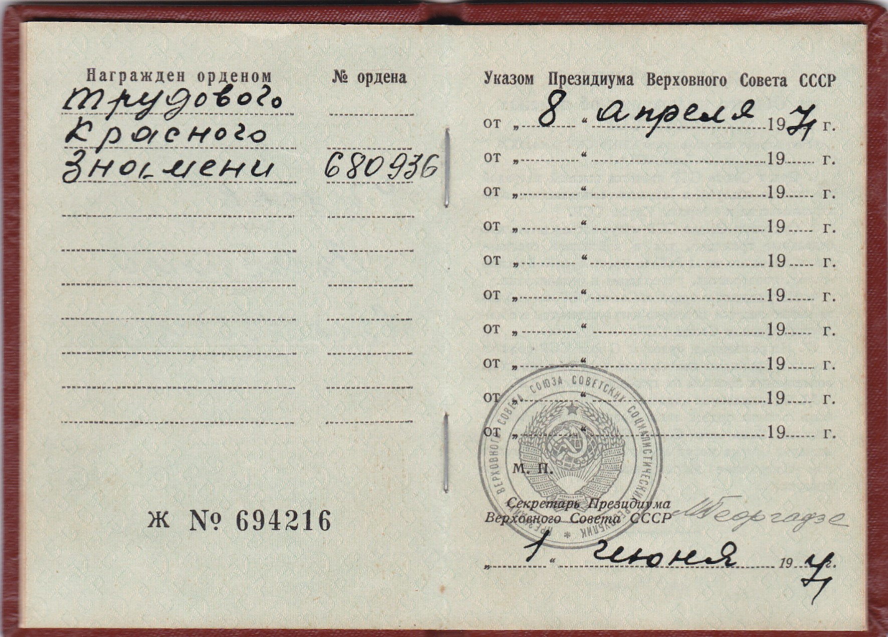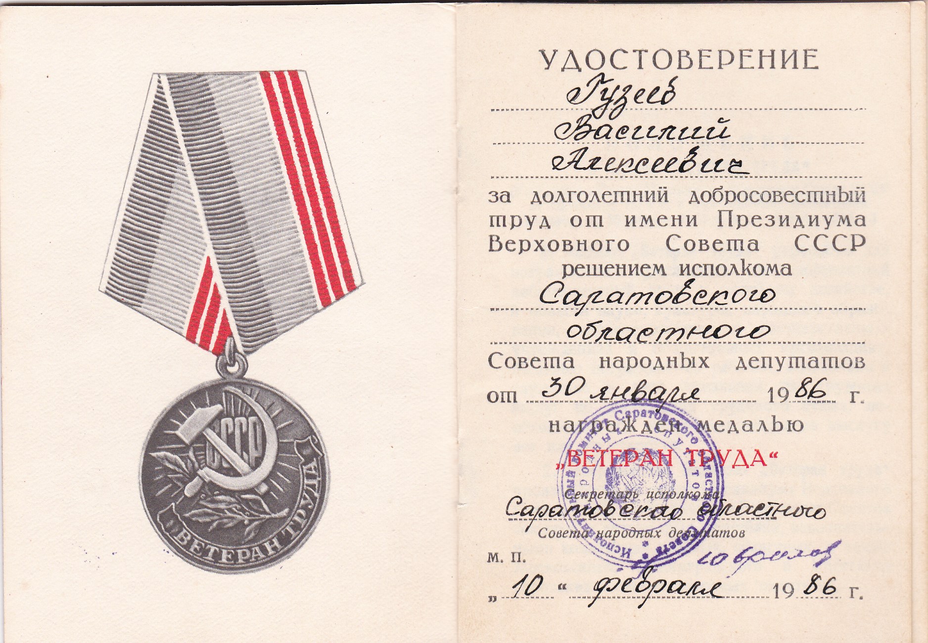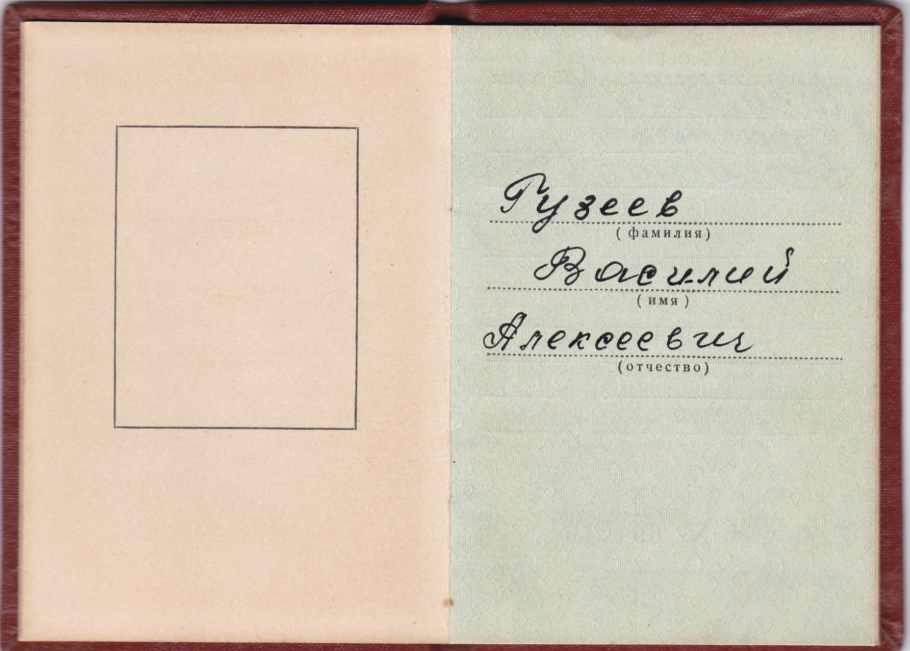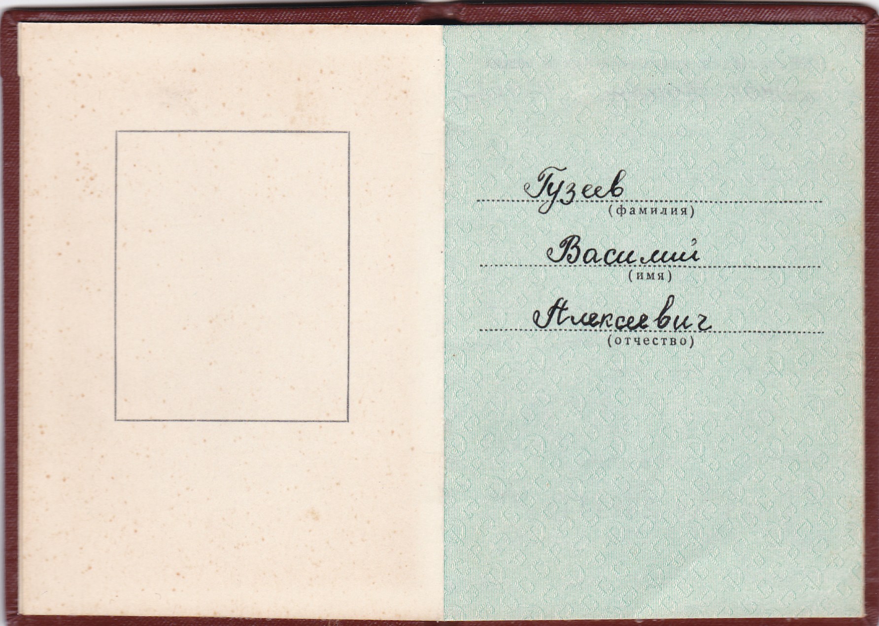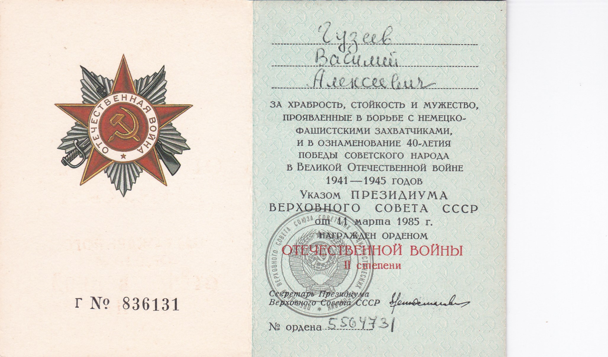Закончил школу 7 классов.Отучился на тракториста,3 месяца работал на тракторе в колхозе "Красный партизан".Призвали в армию,служил снайпером.Осенью 1943 г. его ранили в обе ноги,одна ниже колена,другая выше.Лечился в госпитале,комиссовали в 1945г. в январе.