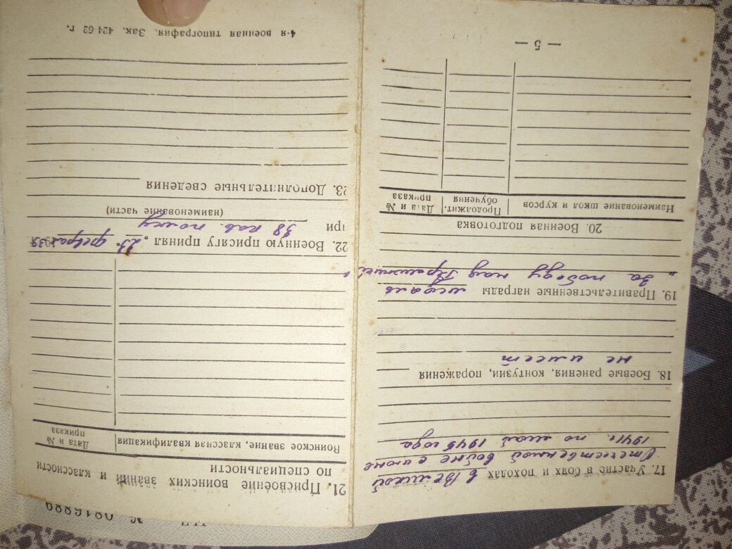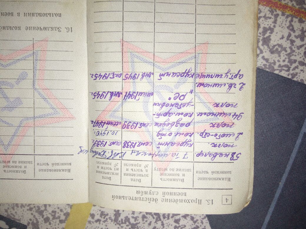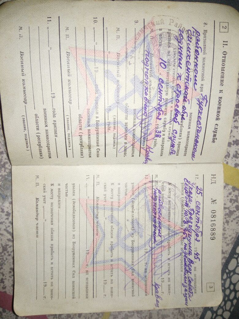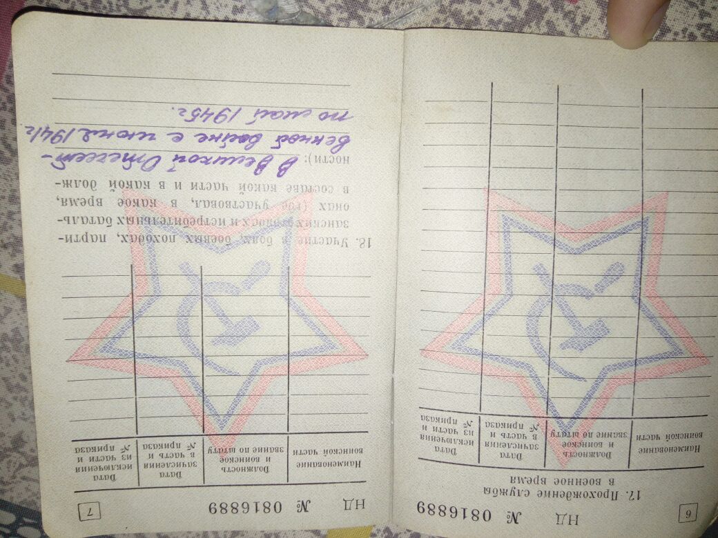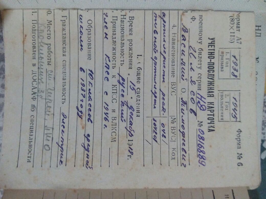 Прошел всю войну!!! Призван 10.09.1938 года 58 кавалерийский полк (01.10.1938 года) ВУС-042304201, в 1939 - году командир отделения разведки, 1944 год - командир арт.установки 94 Минометного полка, в запасе 25.09.1945 года. Умер в пос. Гирей Гулькевического района Краснодарского края в 1991 году, похоронен на Красносельском кладбище.
