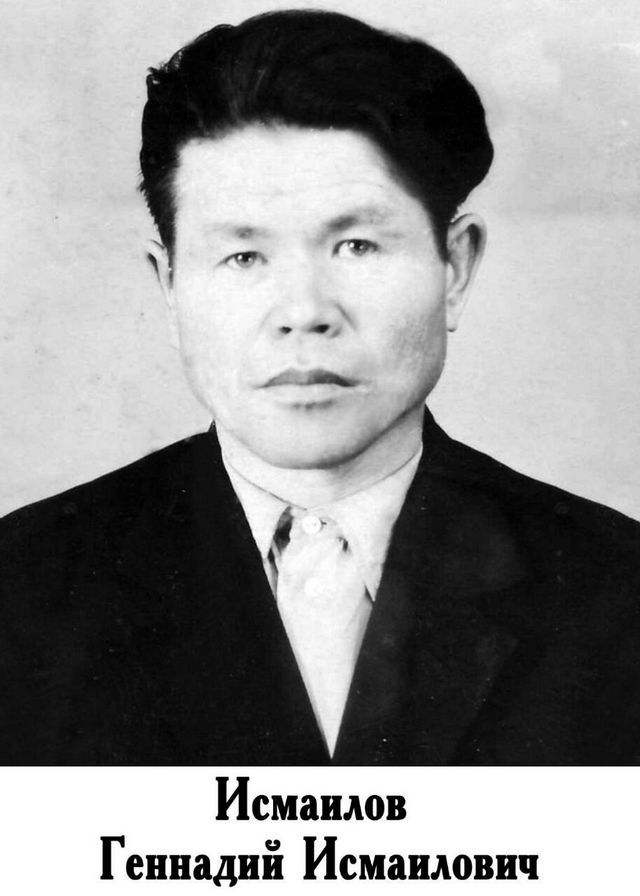 Исмаилов Геннадий родился 1 сентября 1925 г. в Кызыл-Казахе (старое название) Нагайбакского района Челябинской области. Вырос в Магнитогорском Детдоме. Призван в 19 лет в (с. Арсланбаевка или Фершампенуаз?) Челябинской области, воевал на Украине, в Беларуси стрелком. Получил ранение в Бобруйске.