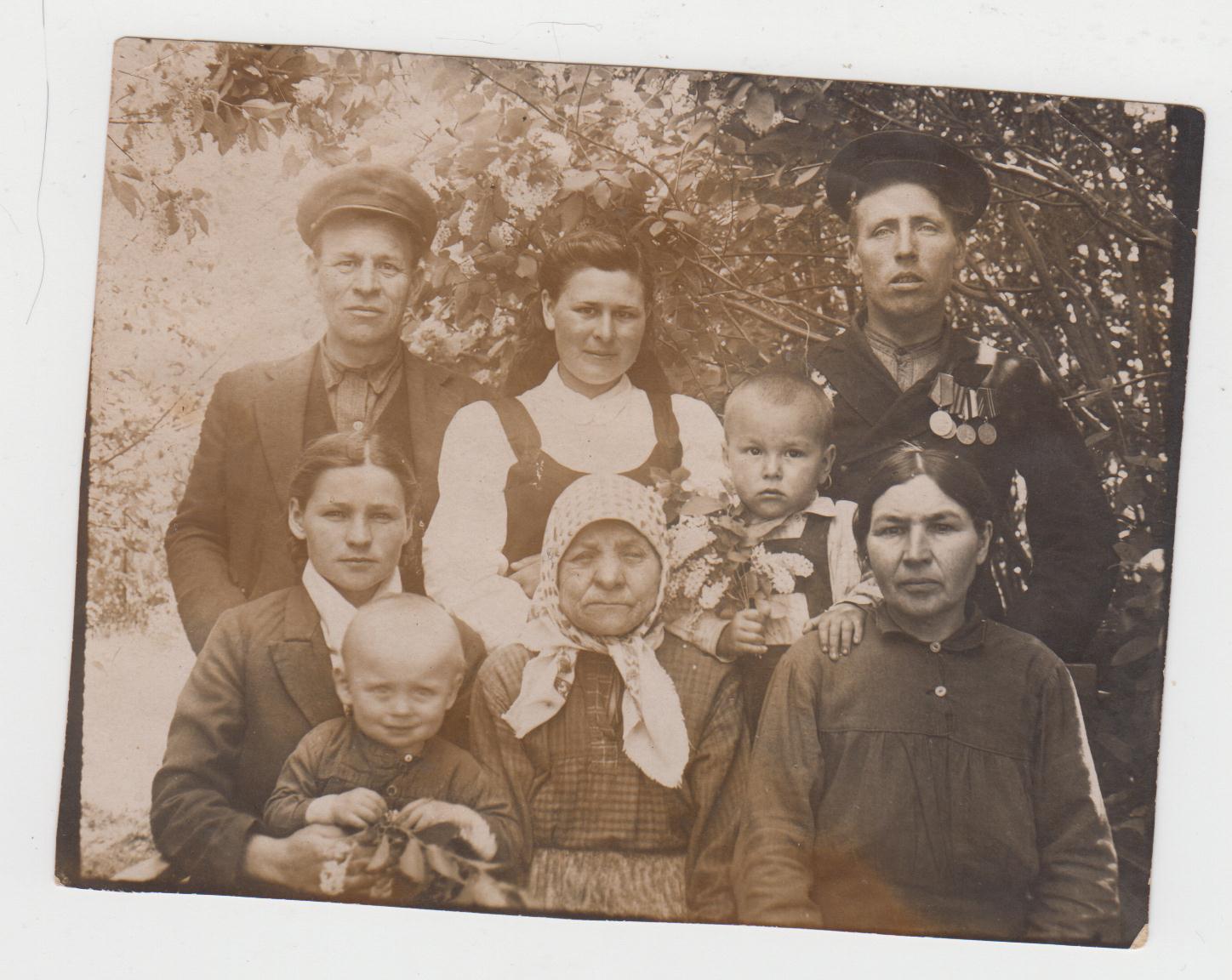 Мама рассказывает : " Папа вернулся ближе к зиме в 1945 году. Мне было 5 лет, но я помню- он привез нам всем , а нас всего четверо детей, по губной гармошке. Это был самый счастливый день и самый главный праздник". Дедушка был очень аккуратным, чистоплотным, трудолюбивым, мастером на все руки : шил тулупы,был печником округи.Умер 19 марта 1980 года.